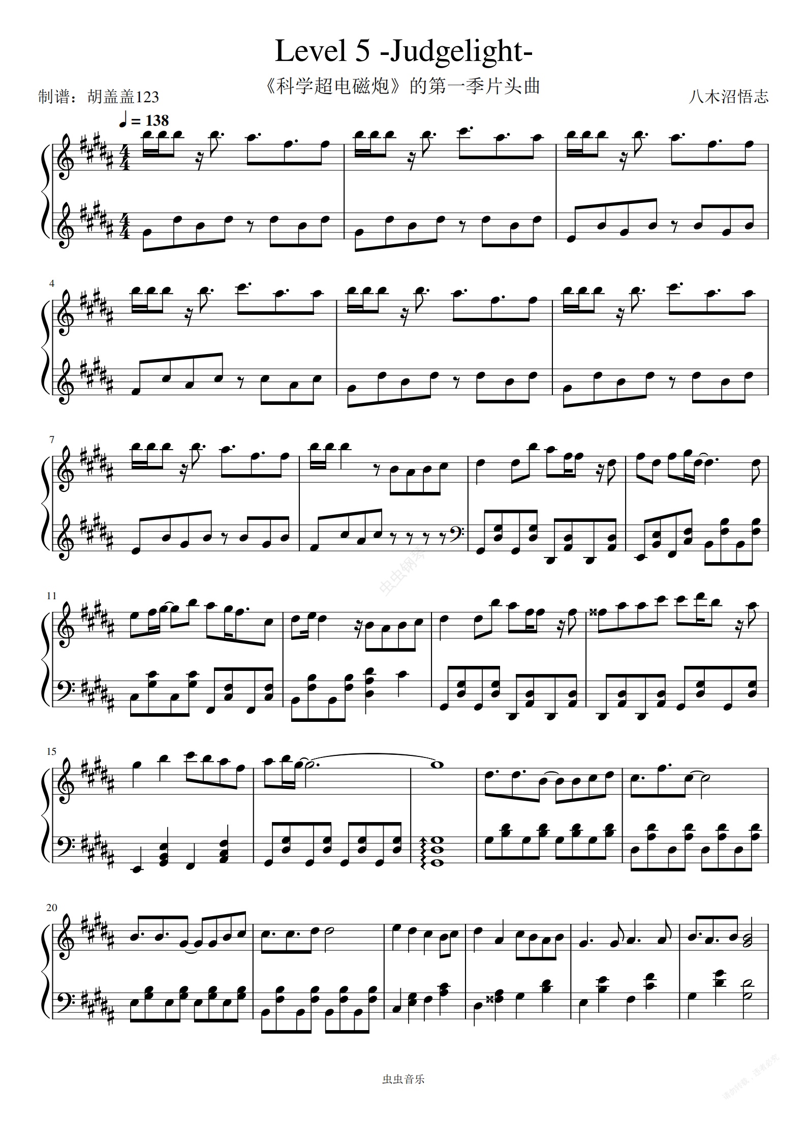 钢琴谱:Level 5 -Judgelight-(科学超电磁炮)