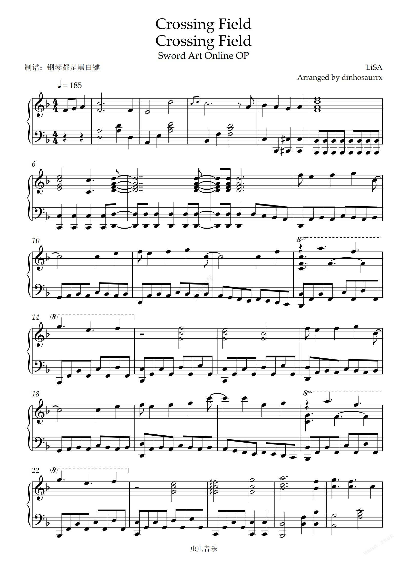 钢琴谱:刀剑神域插曲-Crossing Field 【好听钢琴独奏】
