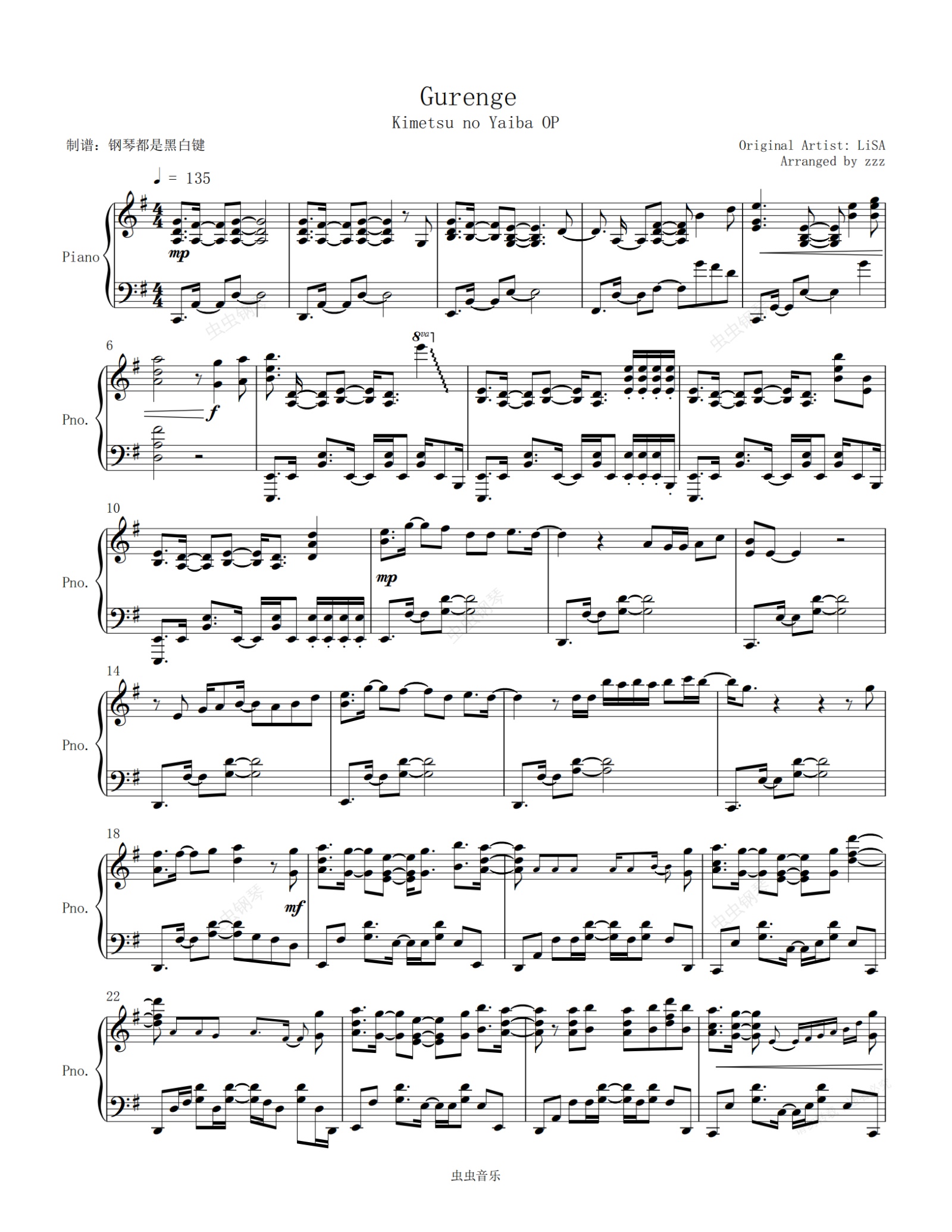 钢琴谱:鬼灭之刃主题曲-红莲华 超燃