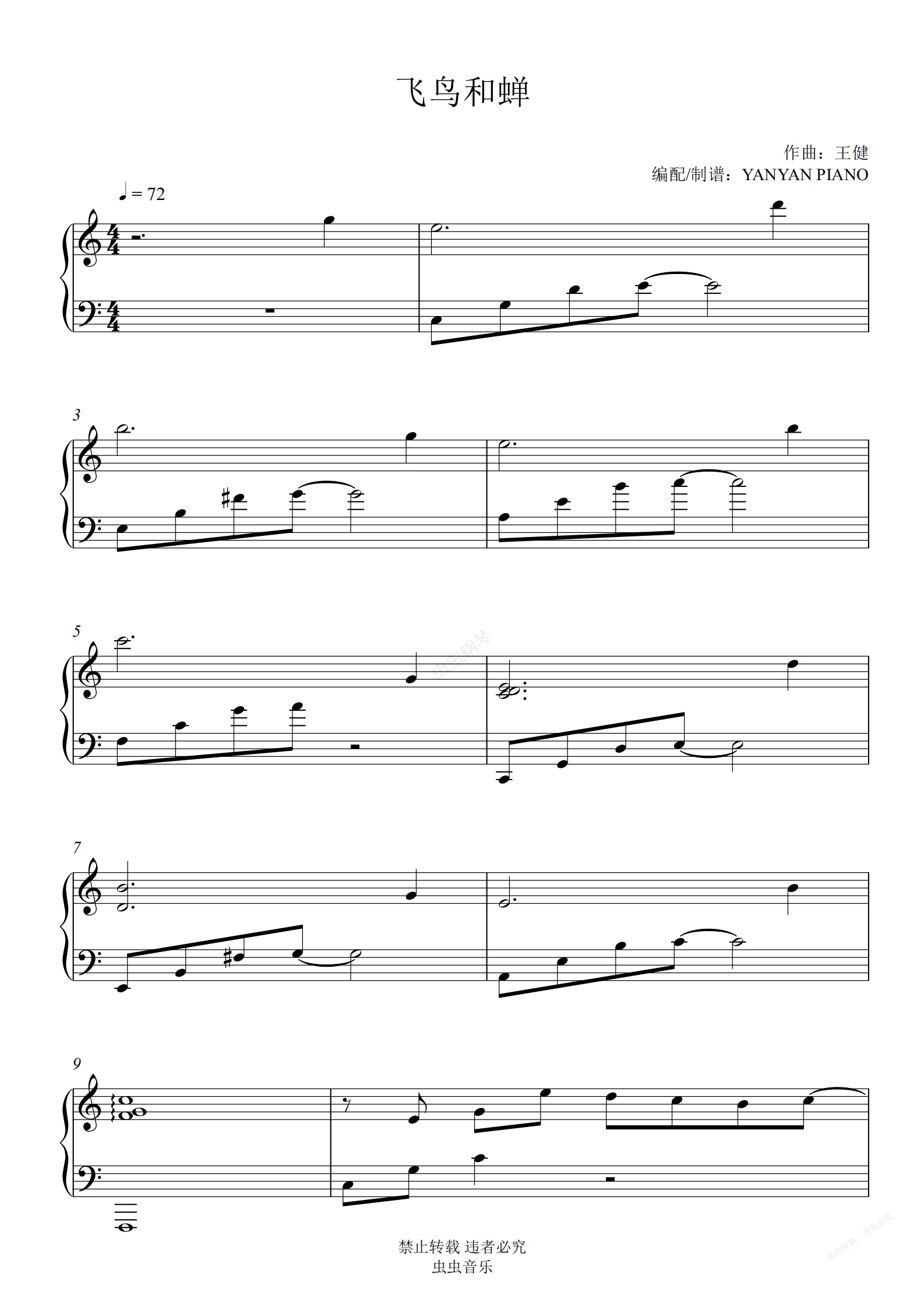 钢琴谱:任然【飞鸟和蝉】好听易弹