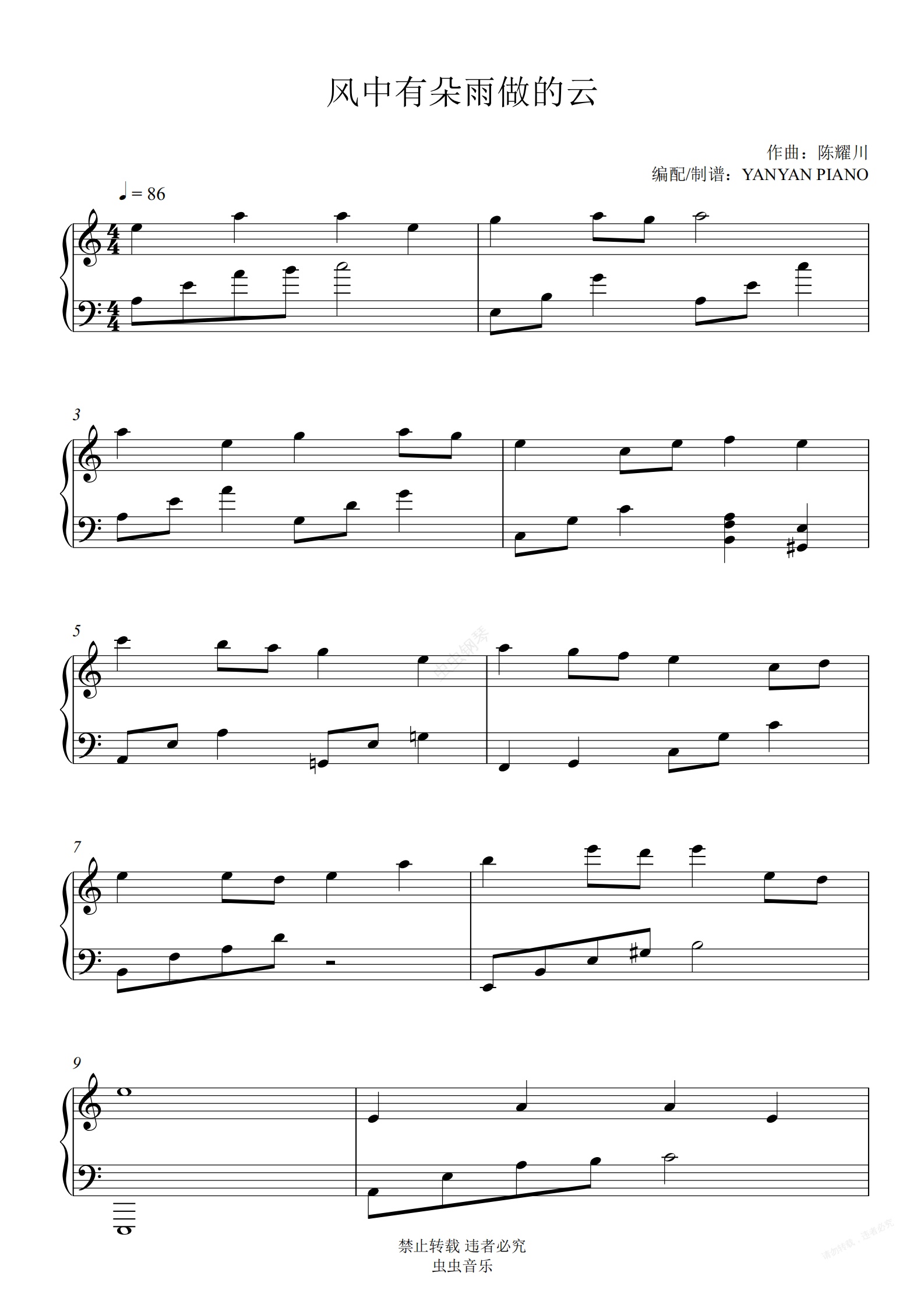 钢琴谱:孟庭苇【风中有朵雨做的云】好听易弹