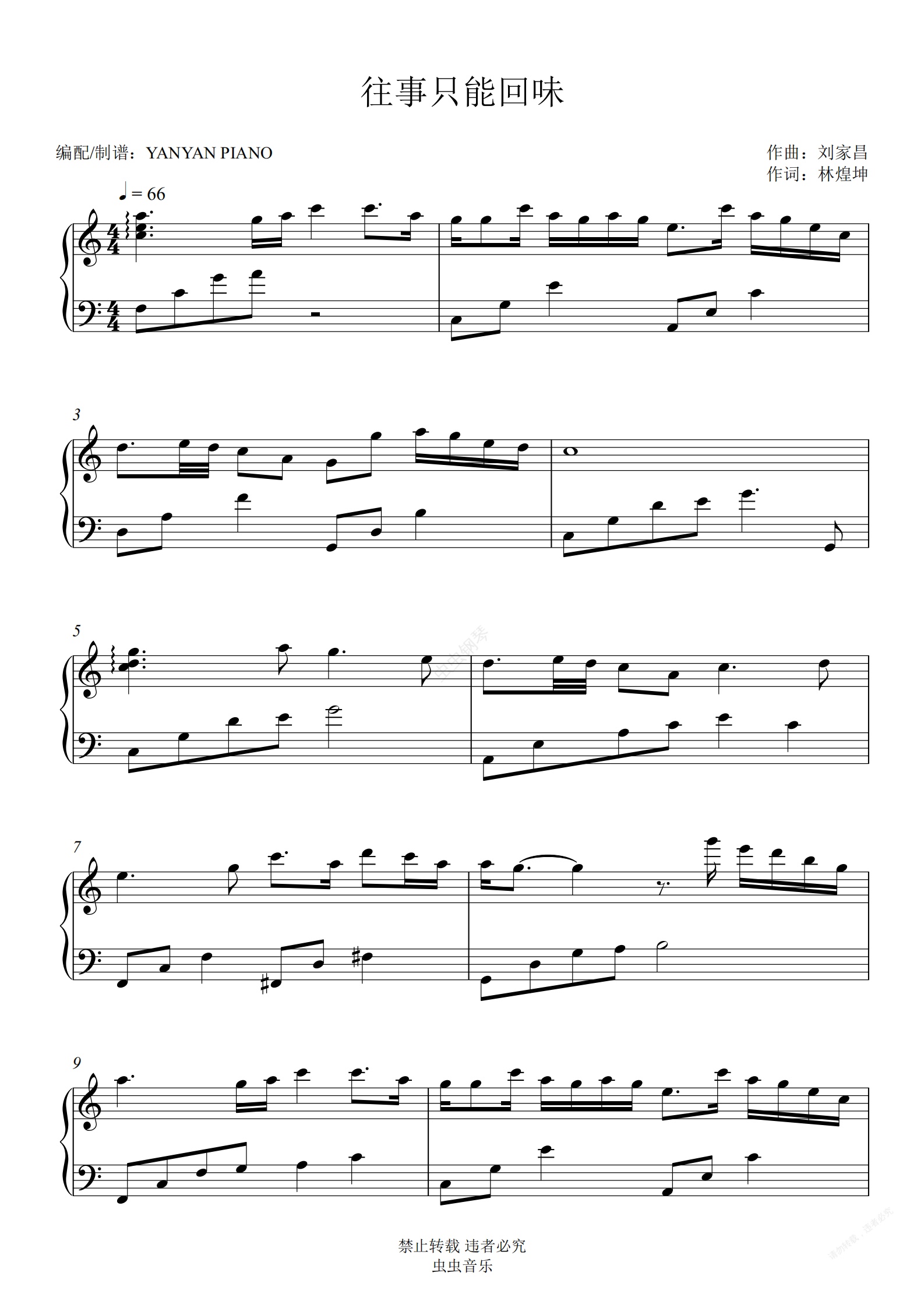 钢琴谱:尤雅【往事只能回味】好听易弹