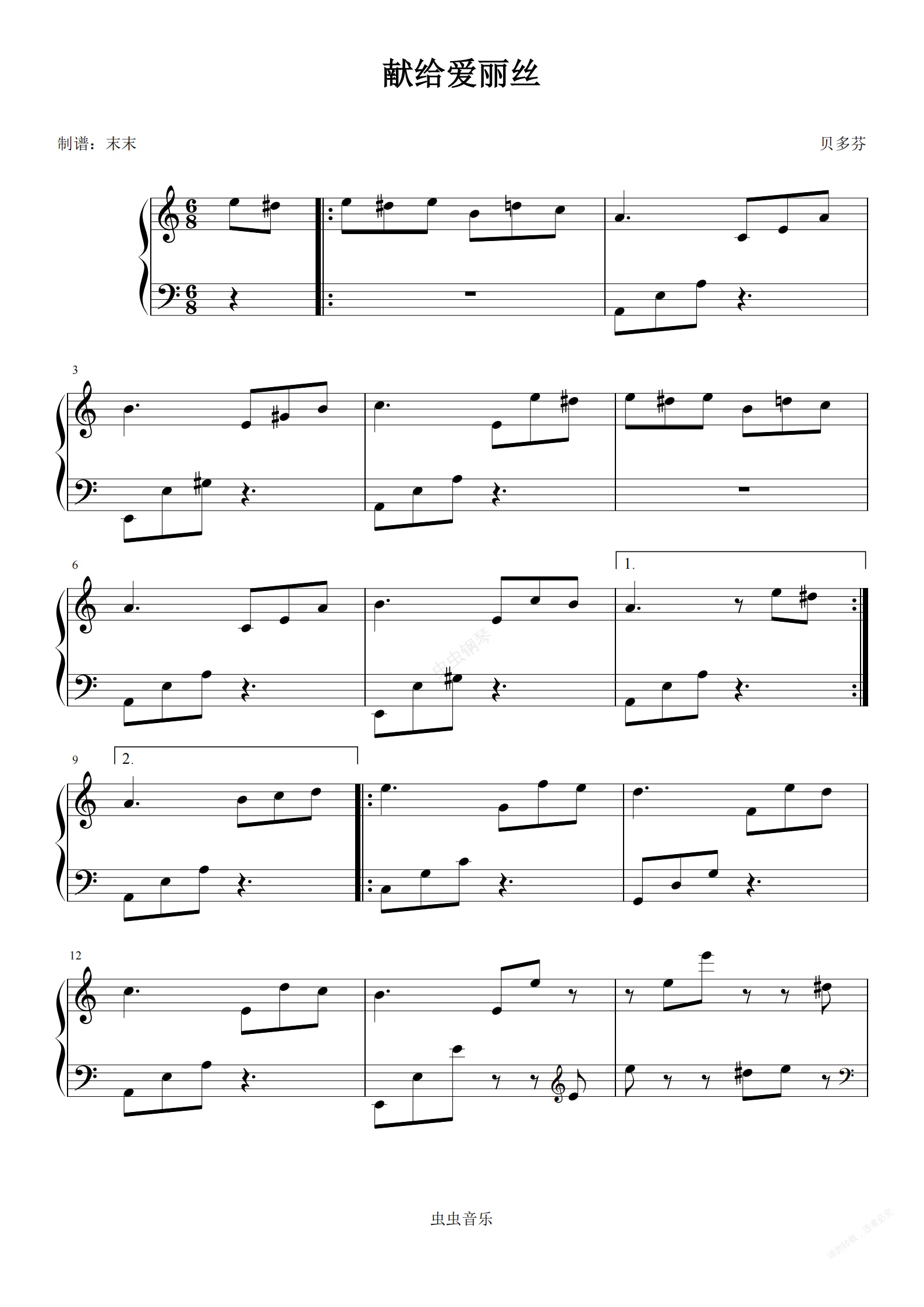 钢琴谱:献给爱丽丝