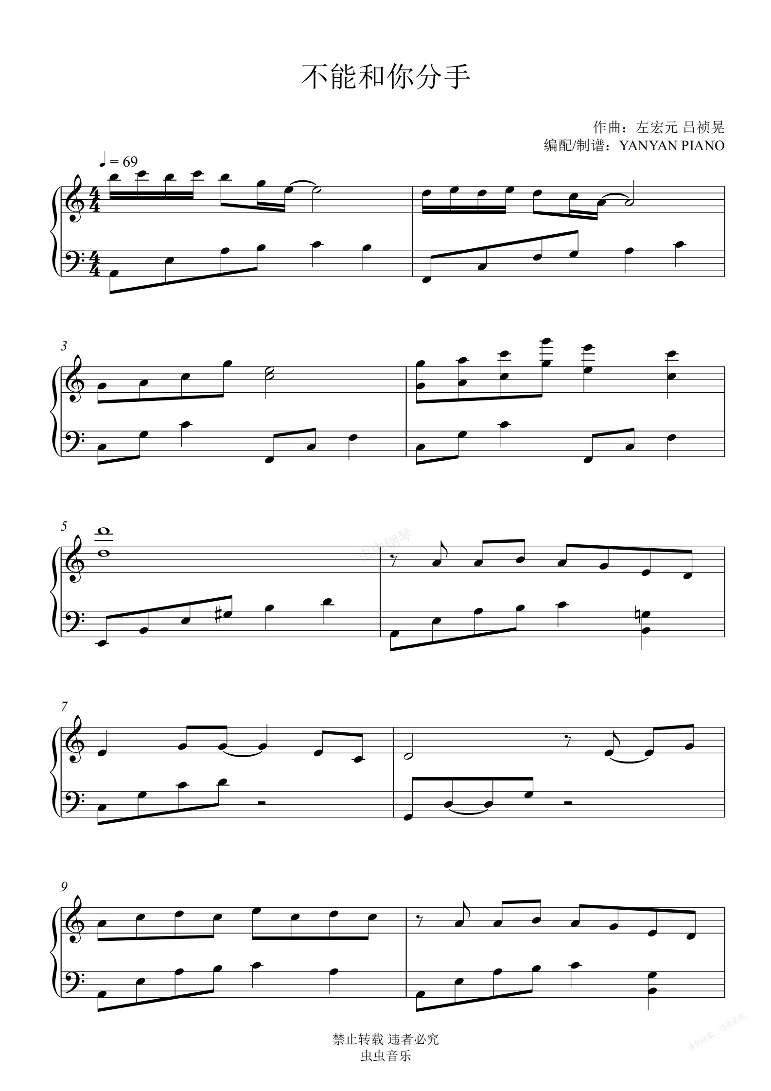 钢琴谱:还珠格格【不能和你分手】好听易弹