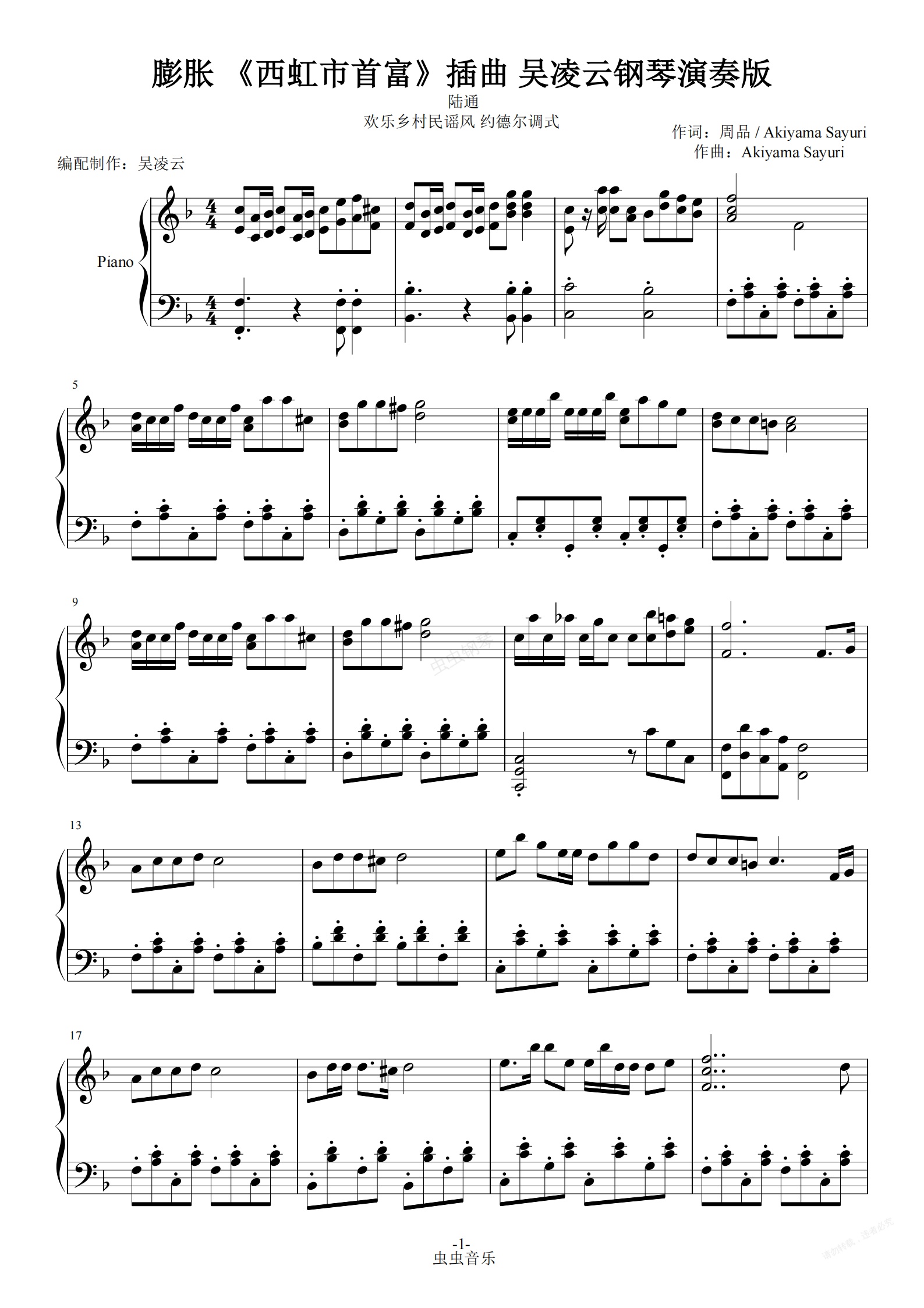 钢琴谱:膨胀 《西虹市首富》插曲 吴凌云钢琴演奏版