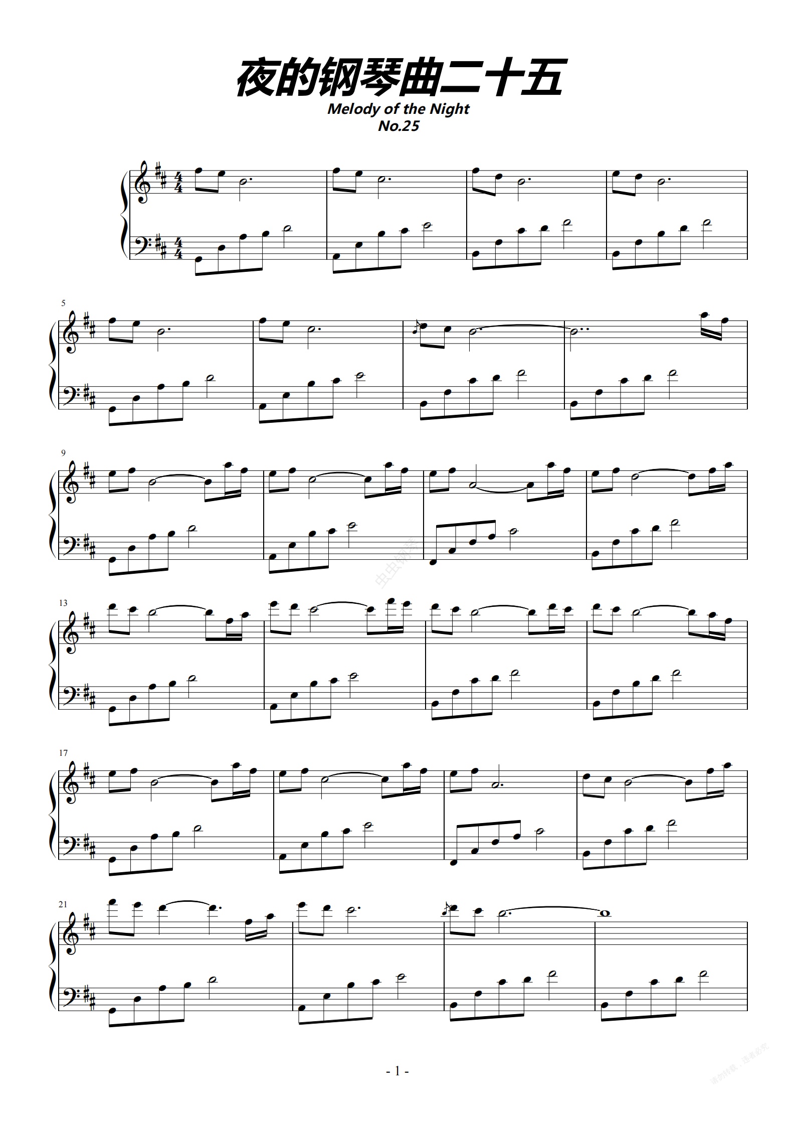 钢琴谱:夜的钢琴曲25