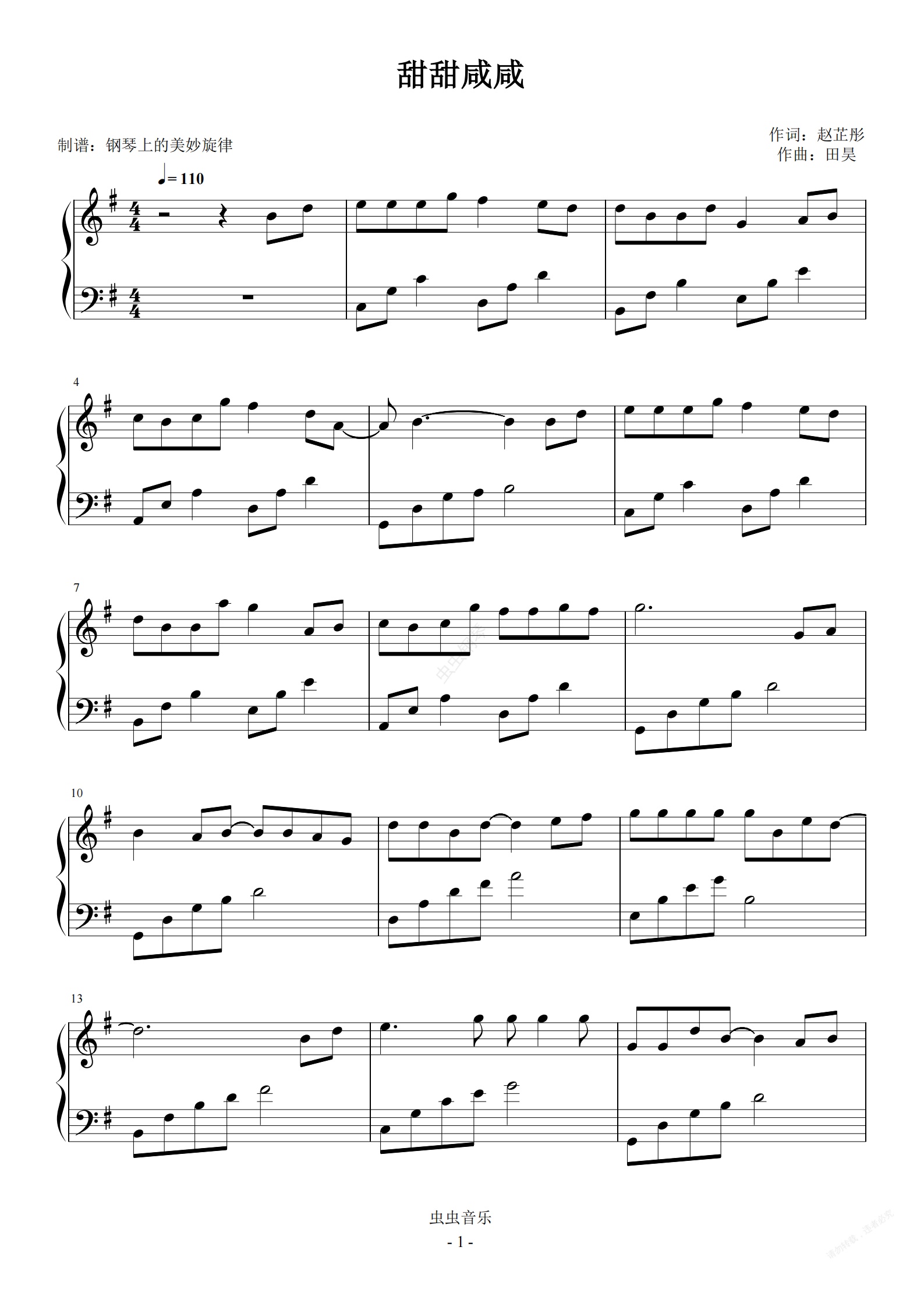 钢琴谱:甜甜咸咸 简易版 赵芷彤