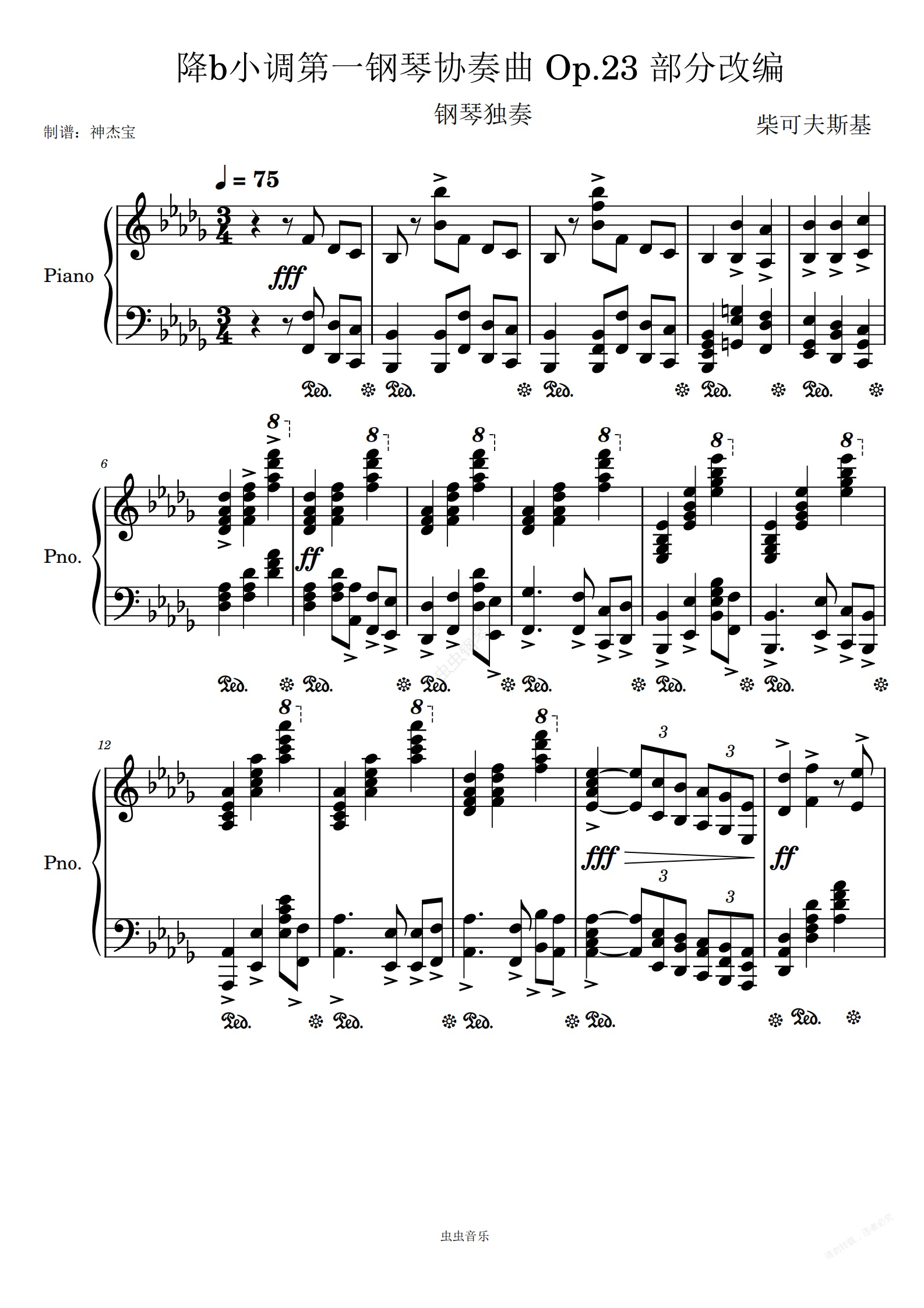 钢琴谱:【神杰宝改编】降b小调第一钢琴协奏曲 Op.23(部分改编版 钢琴独奏)