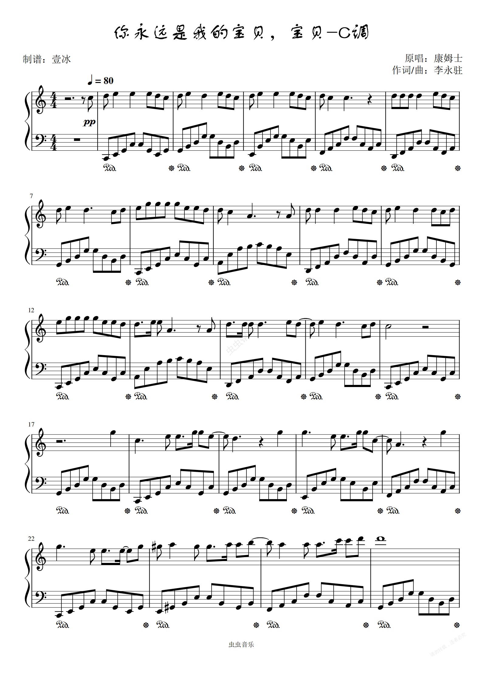 钢琴谱:你永远是我的宝贝,宝贝//康姆士-C调版