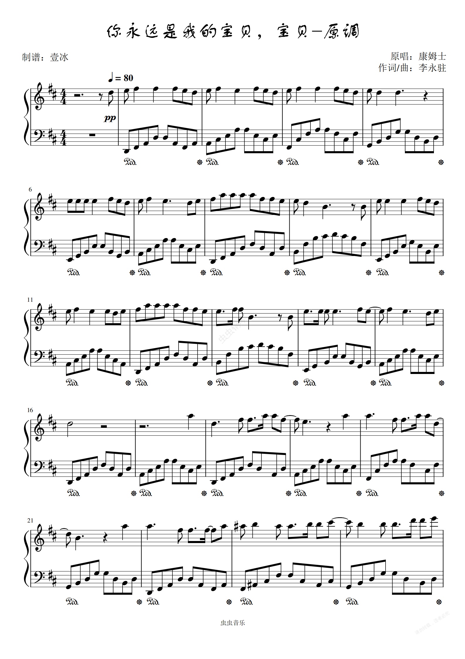 钢琴谱:你永远是我的宝贝,宝贝//康姆士-原调版