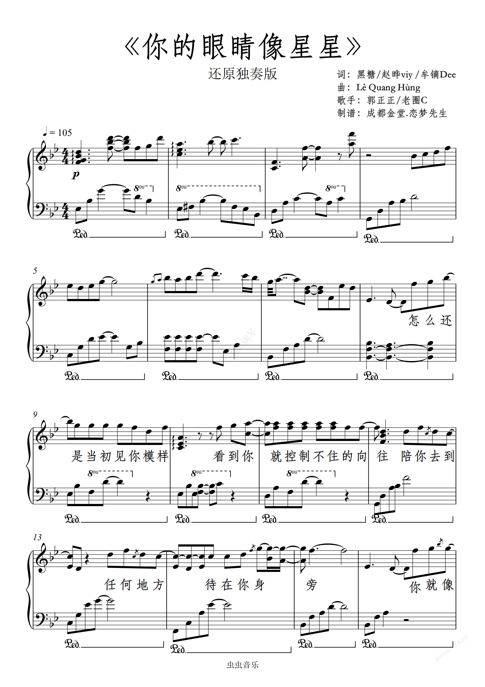 钢琴谱:《你的眼睛像星星》——郭正正/老圈C.还原独奏版
