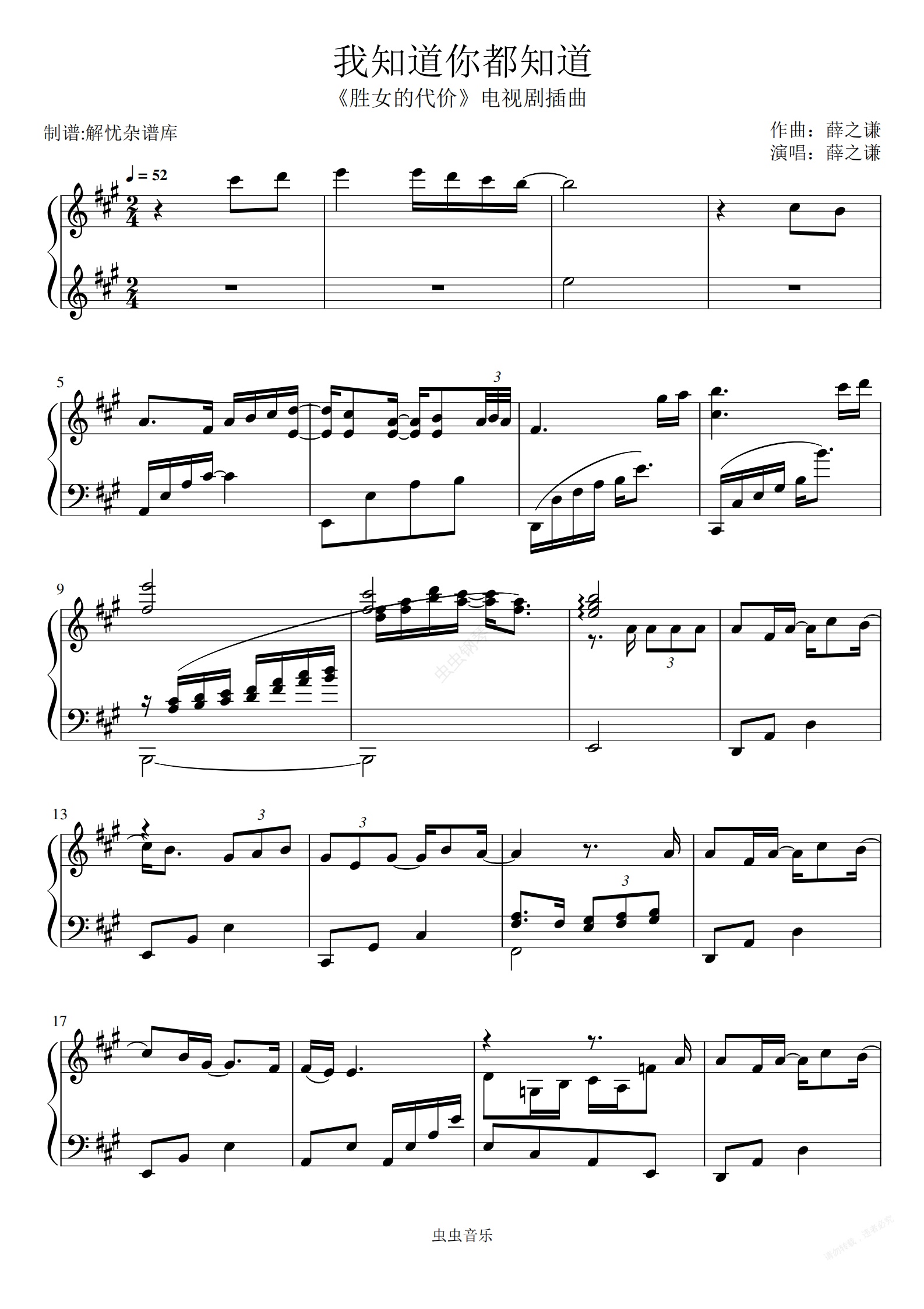 钢琴谱:我知道你都知道《胜女的代价》电视剧插曲