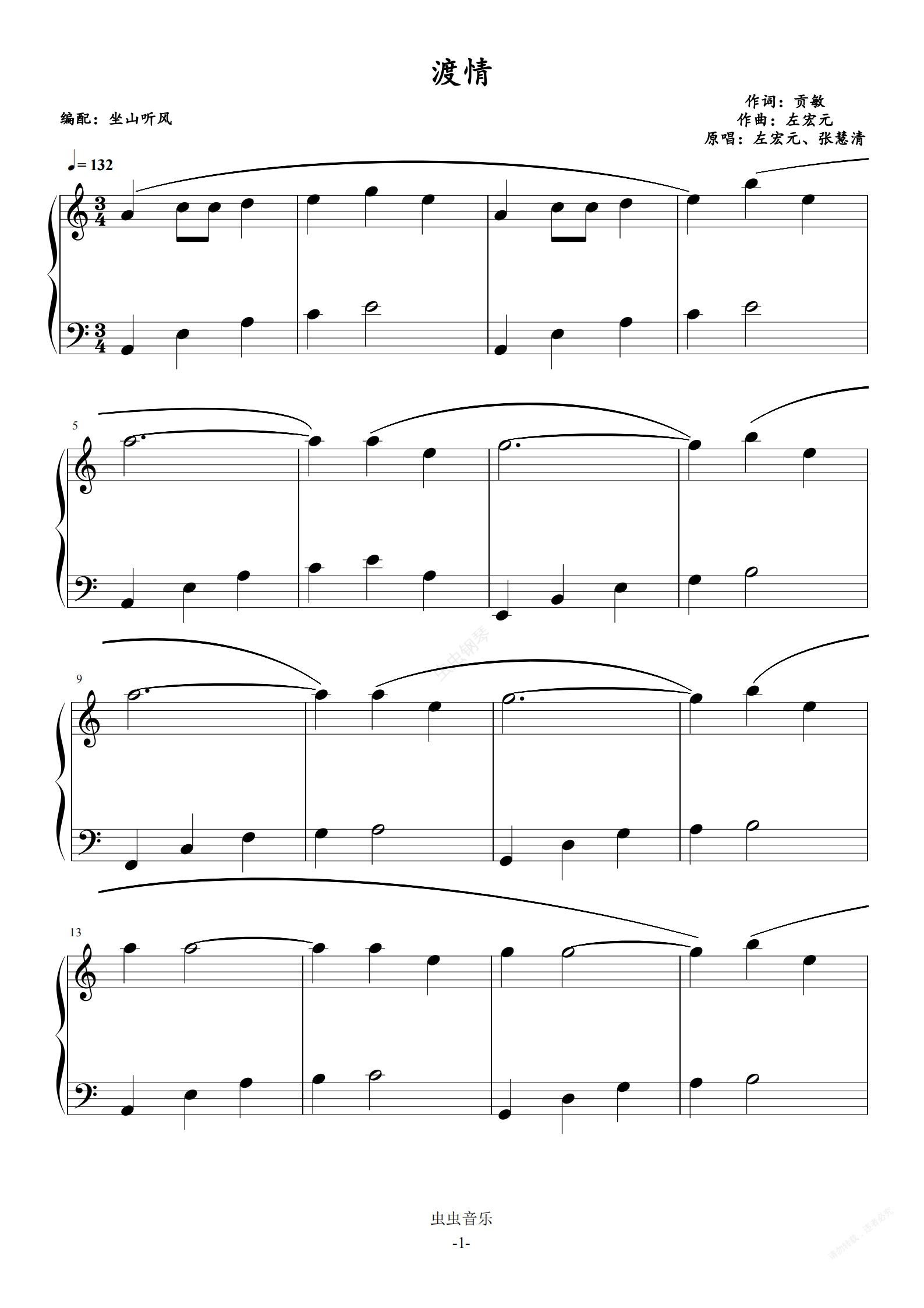 钢琴谱:渡情——唯美入门版《新白娘子传奇》片尾曲