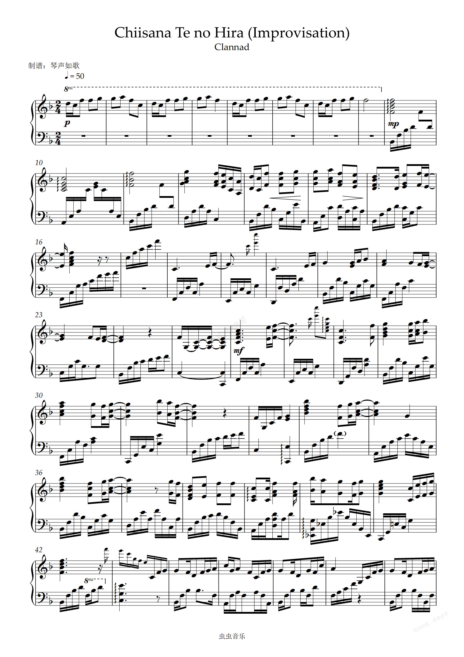 钢琴谱:Clannad - chiisana te no hira  好听到爆炸纯音乐