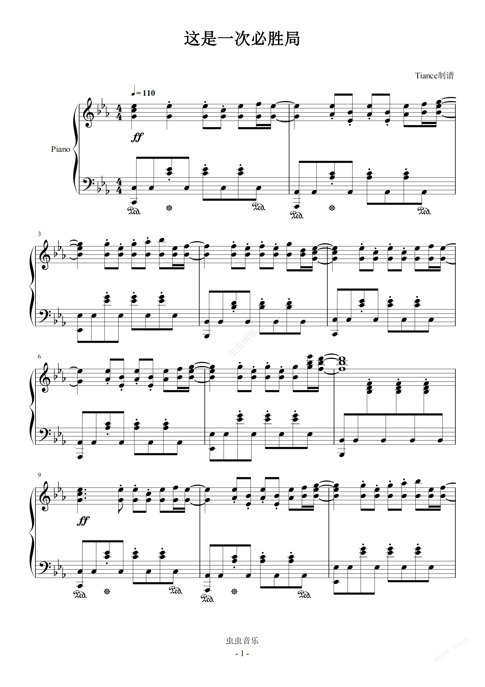 钢琴谱:《这一次是必胜局》抖音洗脑BGM,左手大跳练习,299难度