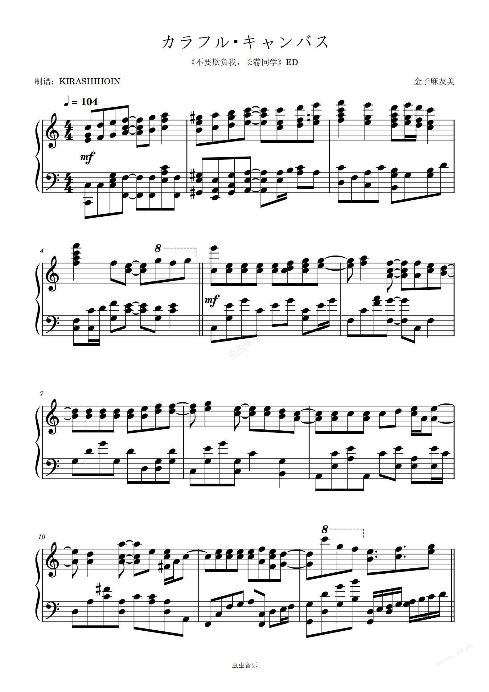 钢琴谱:彩色帆布/カラフル・キャンバス(《不要欺负我,长瀞同学》ED)- 小松未可子/铃木爱奈/井泽诗织/上坂堇