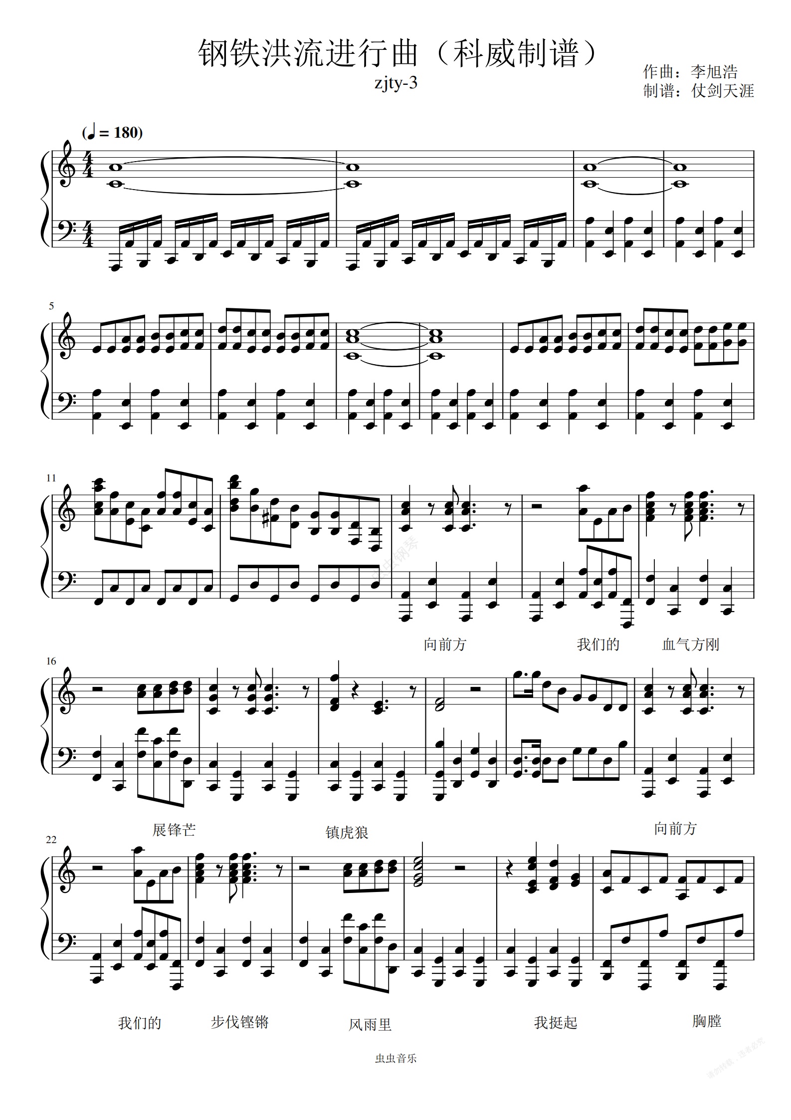 钢琴谱:钢铁洪流进行曲-完美演奏版(科威制谱zjty-3)
