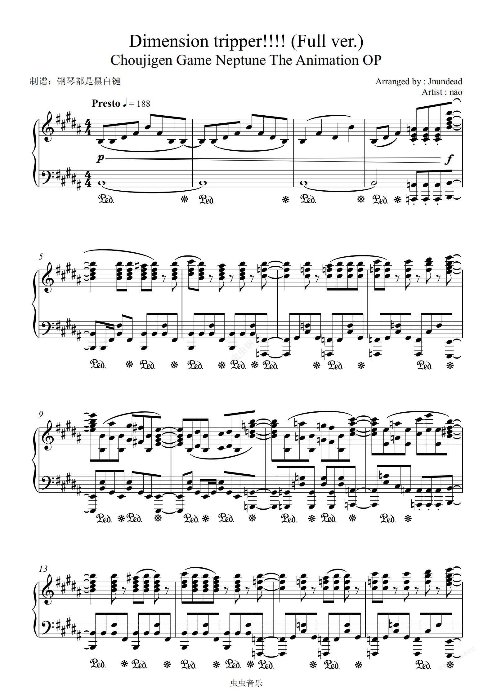 钢琴谱:超次元游戏 海王星OP-Dimension tripper 【超燃钢琴独奏】
