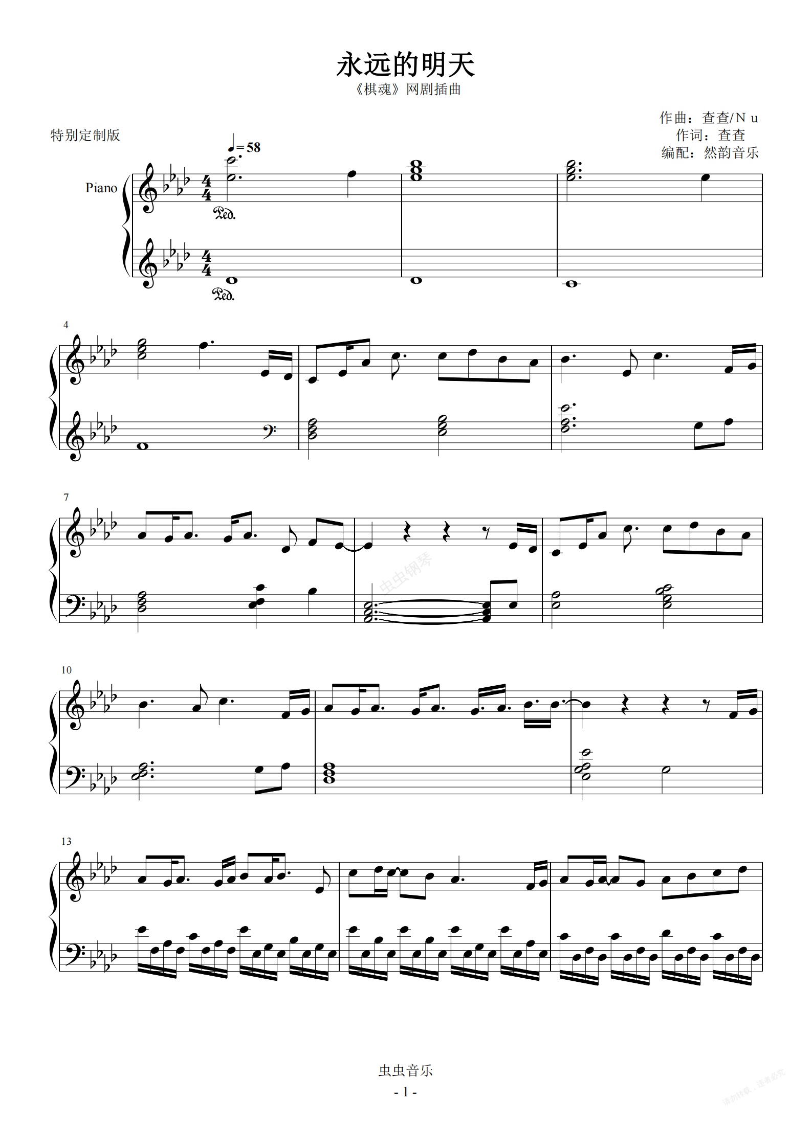 钢琴谱:永远的明天《棋魂》网剧插曲 钢琴唯美还原【然韵音乐】编配