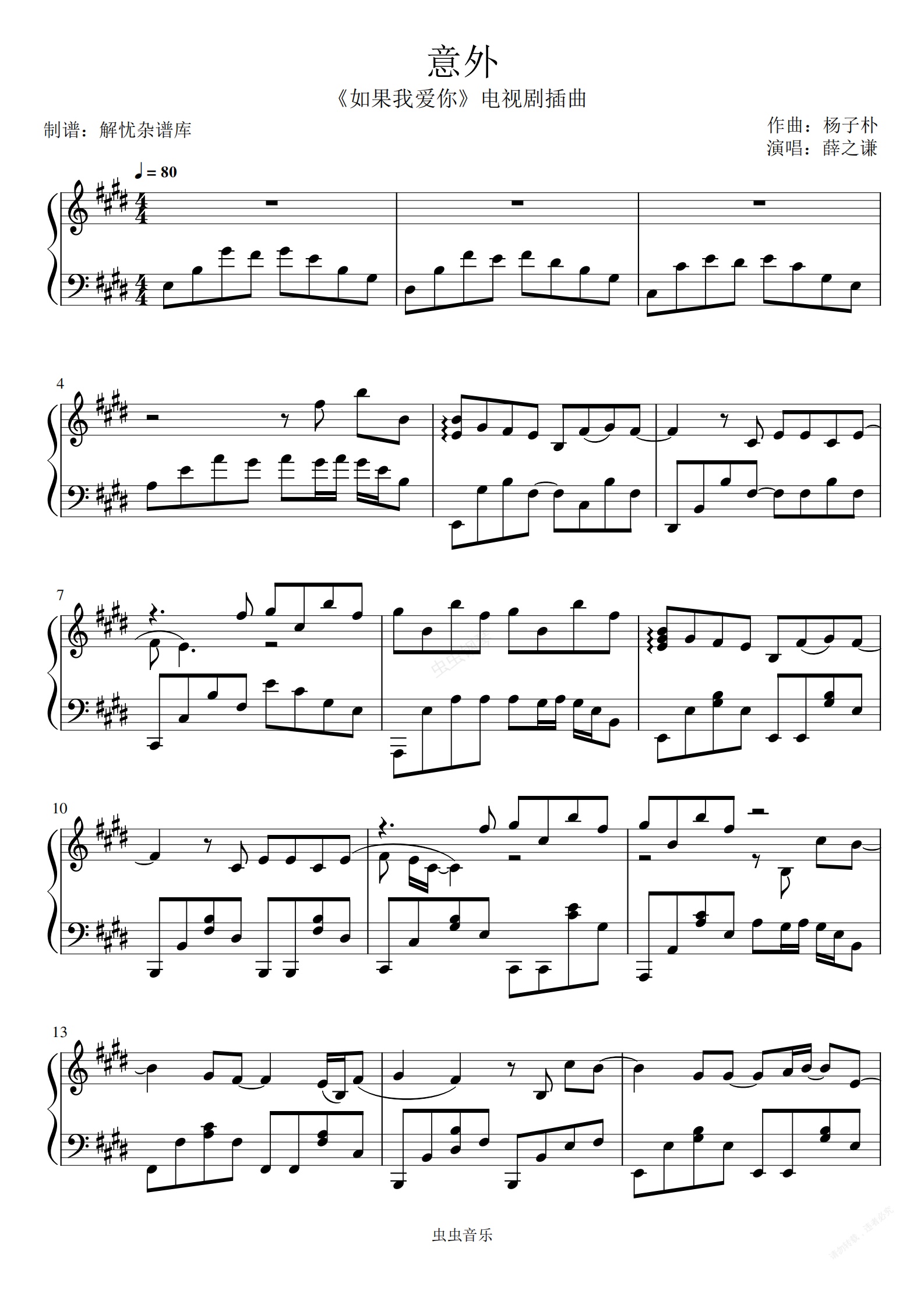 钢琴谱:意外《如果我爱你》电视剧插曲