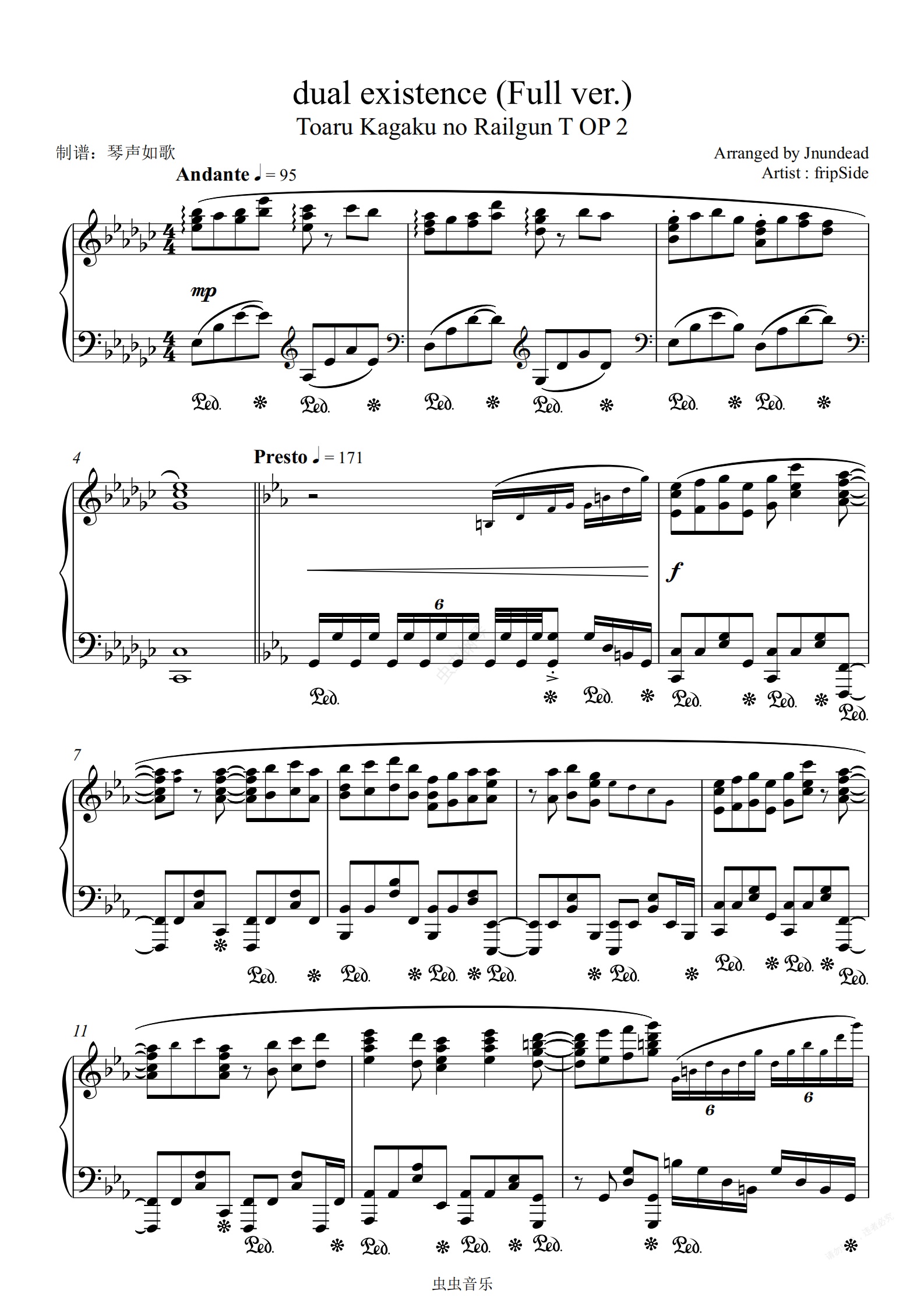 钢琴谱:某科学的超电磁炮插曲-dual existence 【极限还原版】