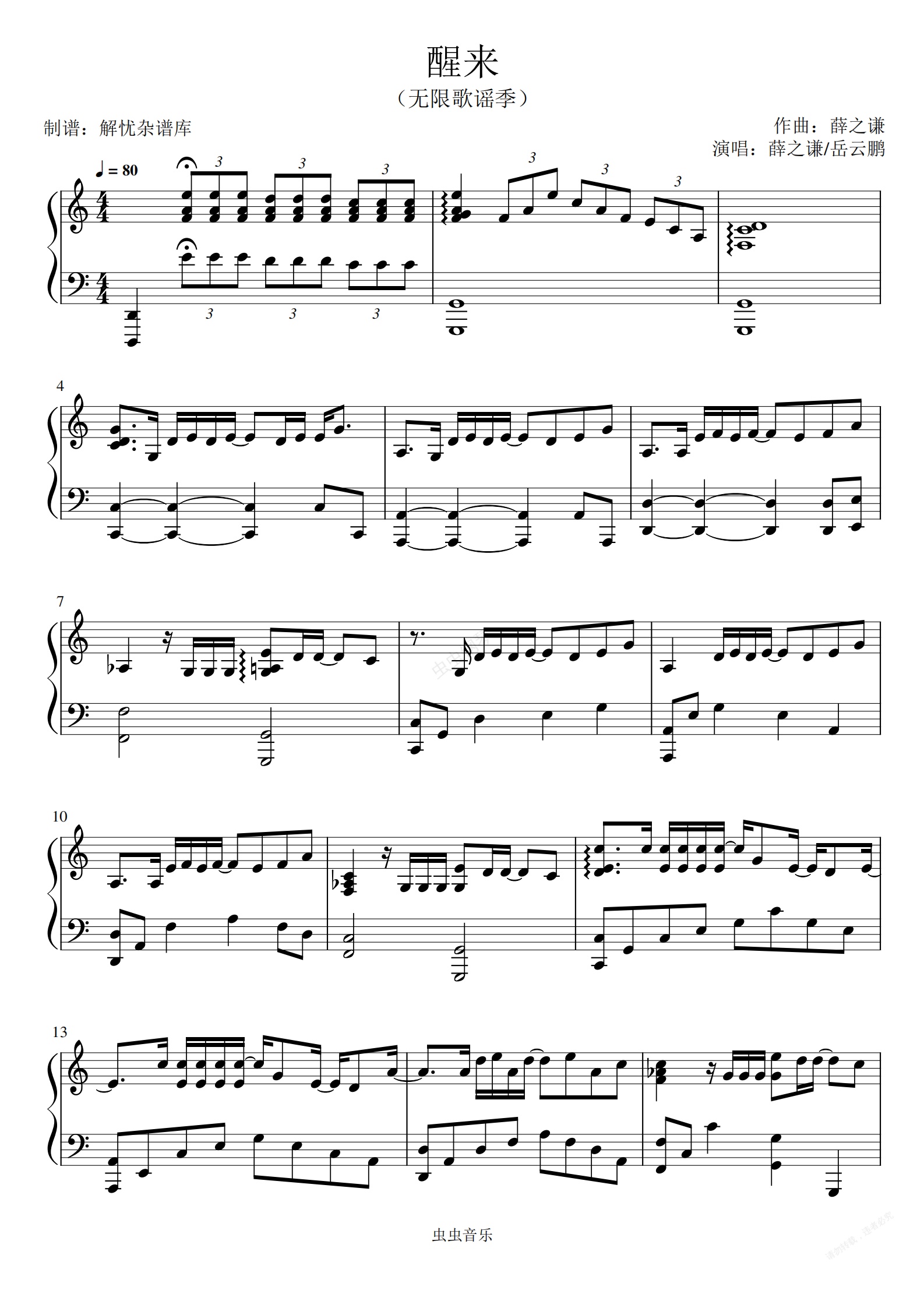 钢琴谱:醒来(无限歌谣季)