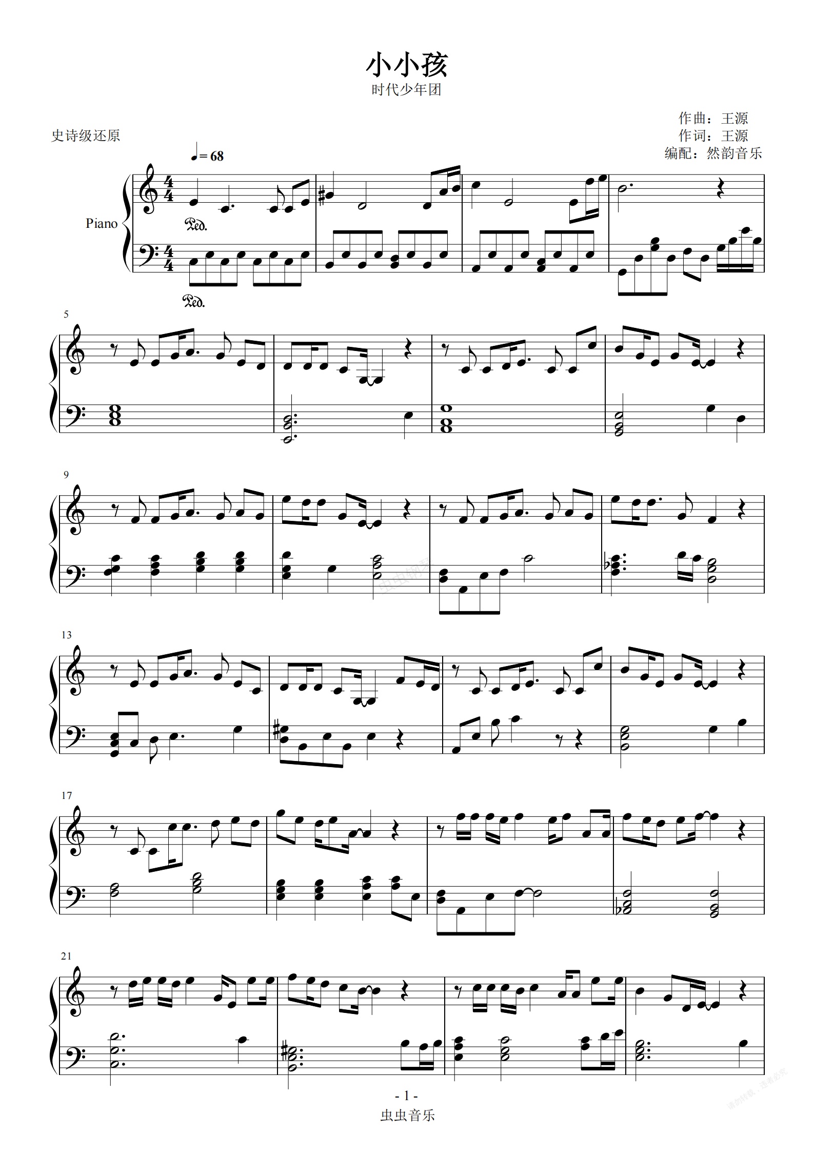 钢琴谱:小小孩-TNT时代少年团 钢琴史诗级还原【然韵音乐编配】