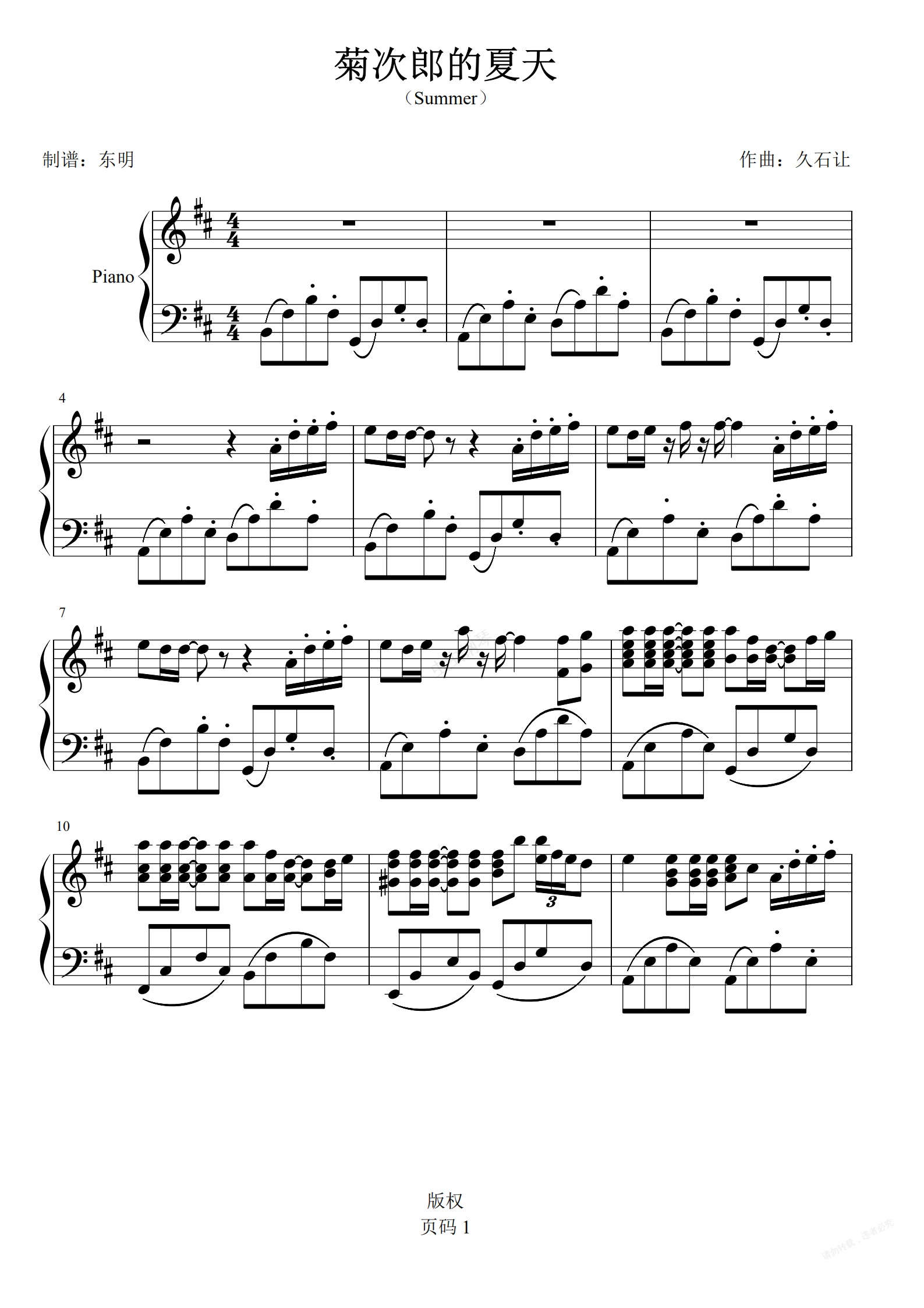 钢琴谱:好听易上手-菊次郎的夏天(summer)久石让 大众版