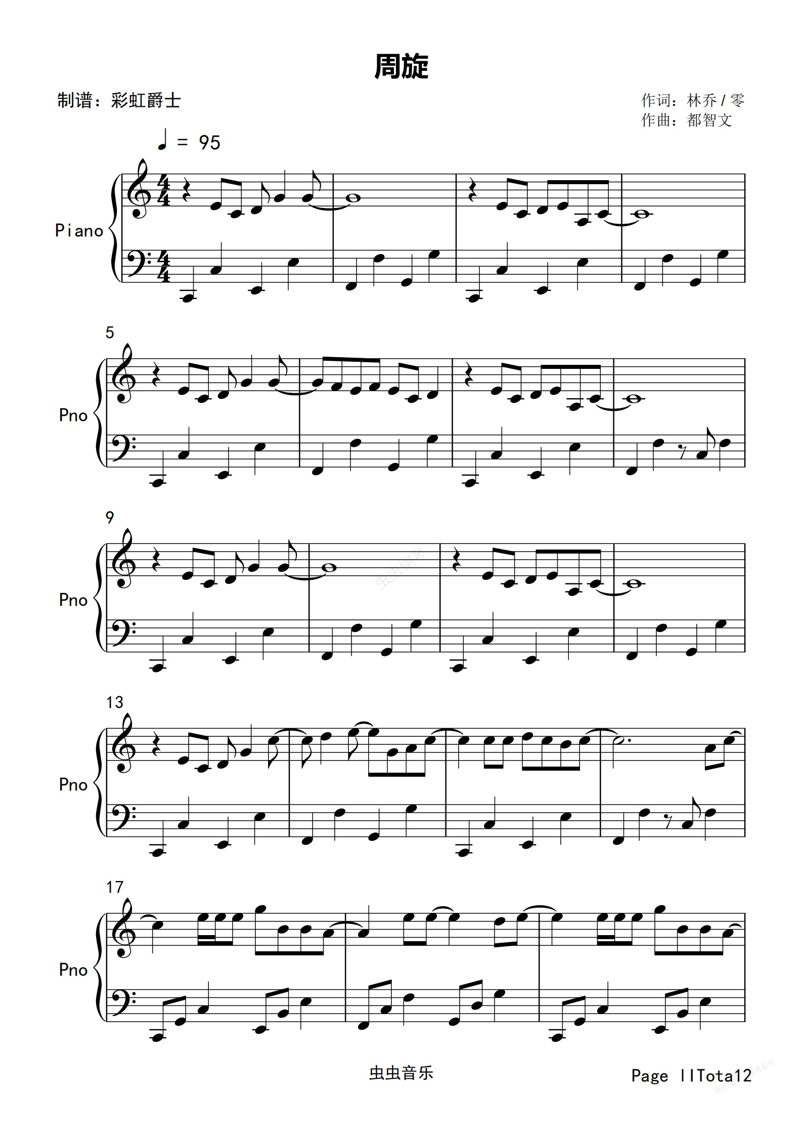 钢琴谱:周旋-C调简单版 钢琴版 张瑶