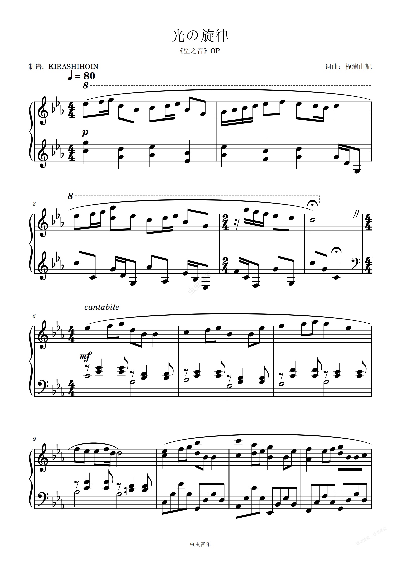 钢琴谱:光的旋律/光の旋律(《空之音》OP)- Kalafina/梶浦由記