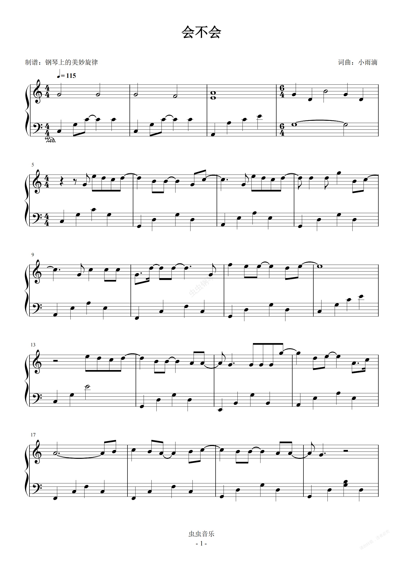 钢琴谱:会不会 C调简易版 刘大壮