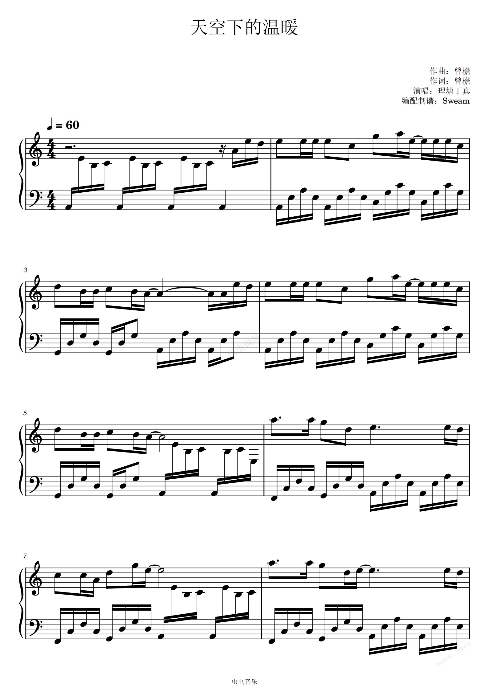 钢琴谱:天空下的温暖(新手入门超高性价比C调简易版)