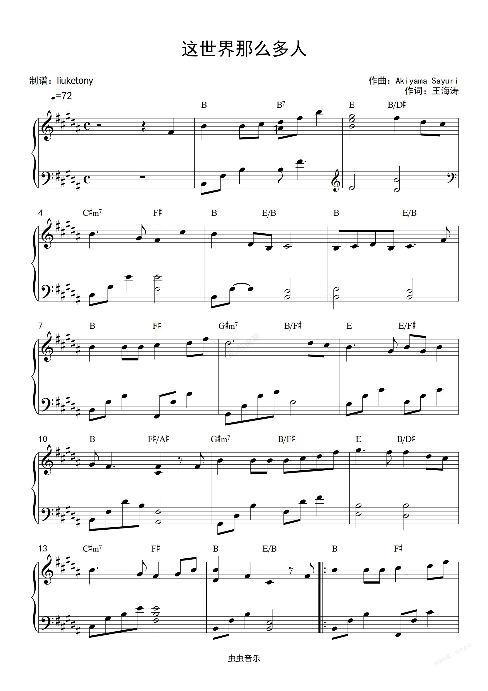 钢琴谱:这世界那么多人 莫文蔚 钢琴独奏B调