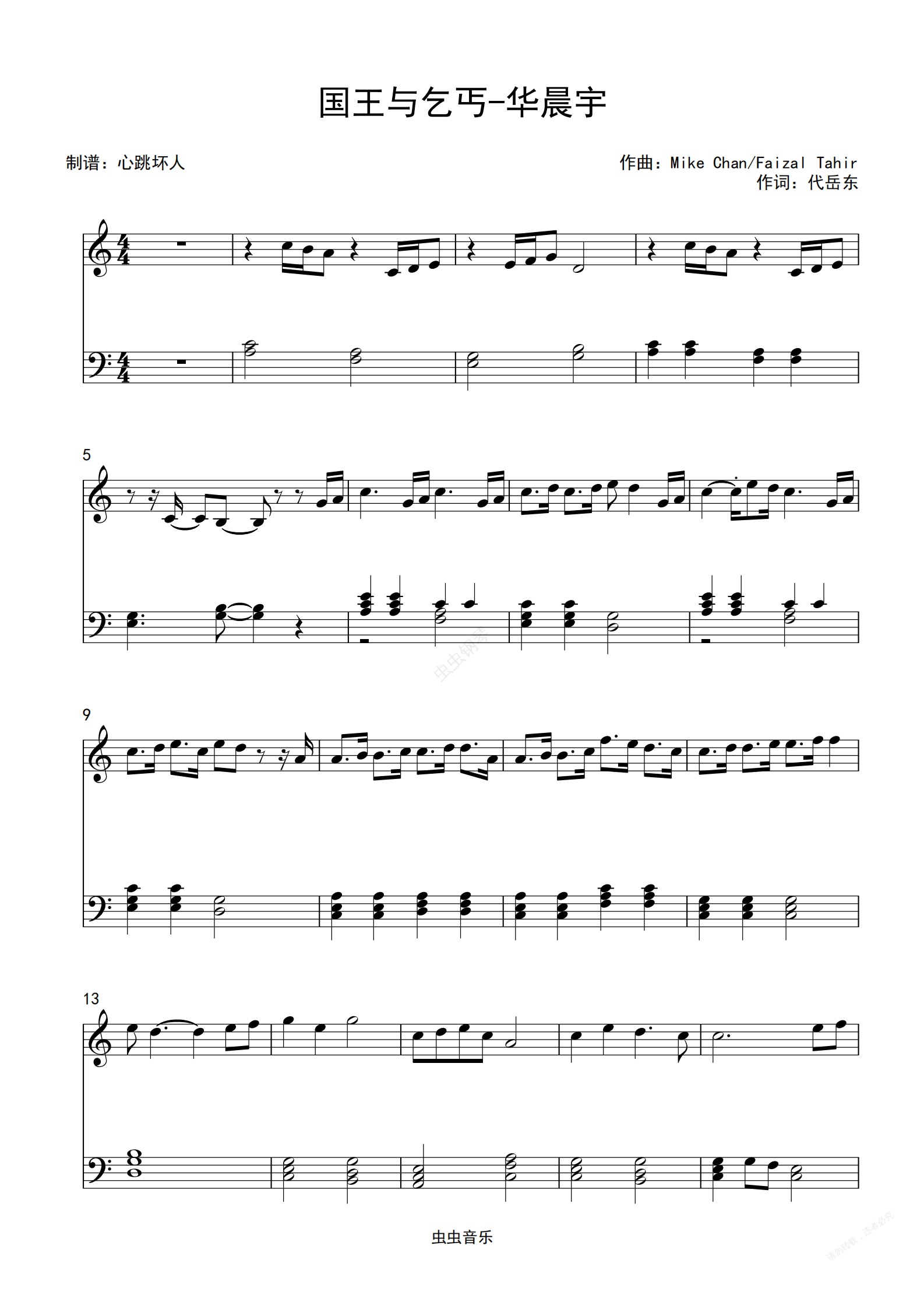 钢琴谱:国王与乞丐-华晨宇/杨宗纬