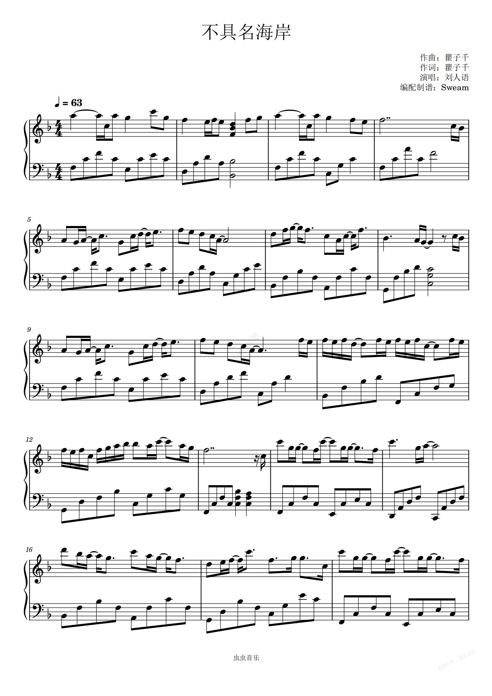 钢琴谱:不具名海岸(性价比超高F调简易版)
