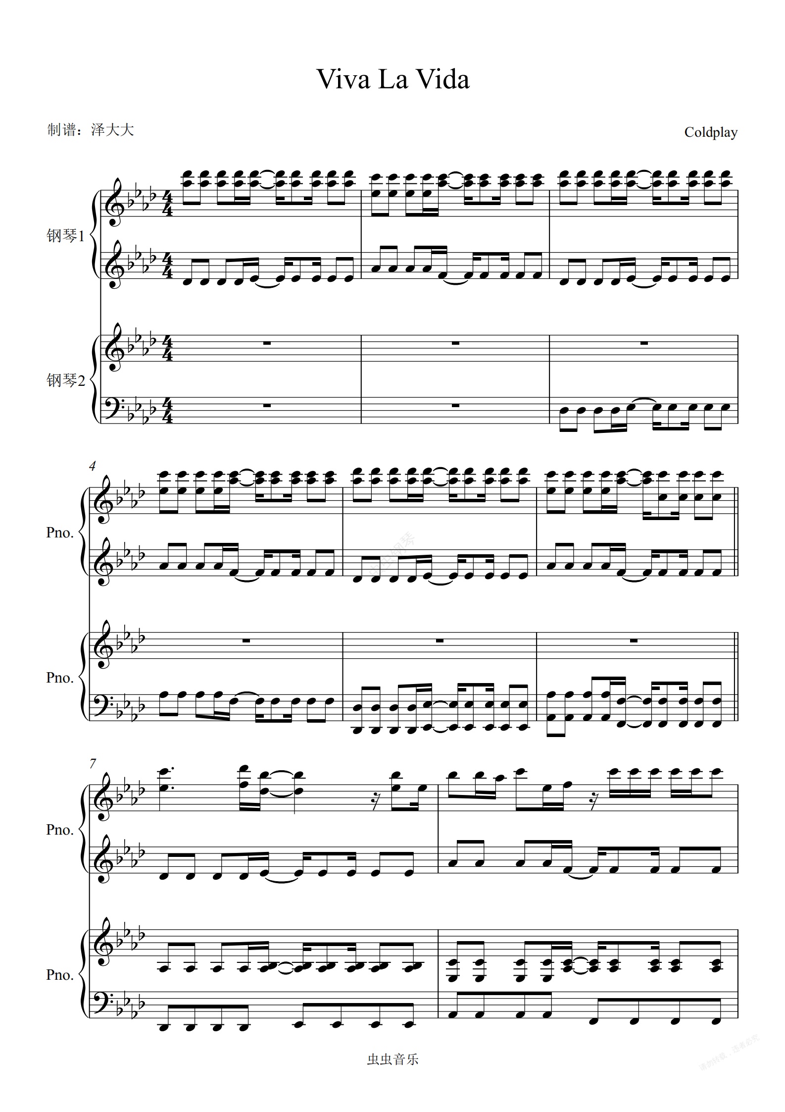 钢琴谱:Viva La Vida【四手联弹】泽大大