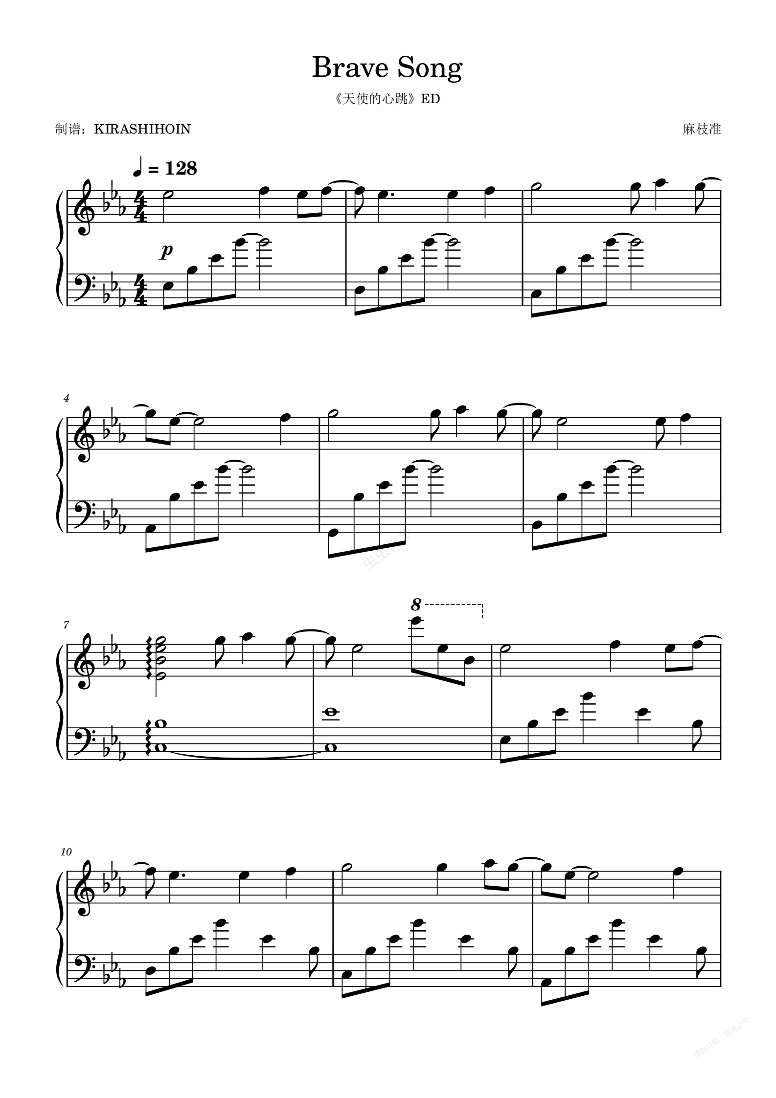 钢琴谱:Brave Song(《天使的心跳》ED)