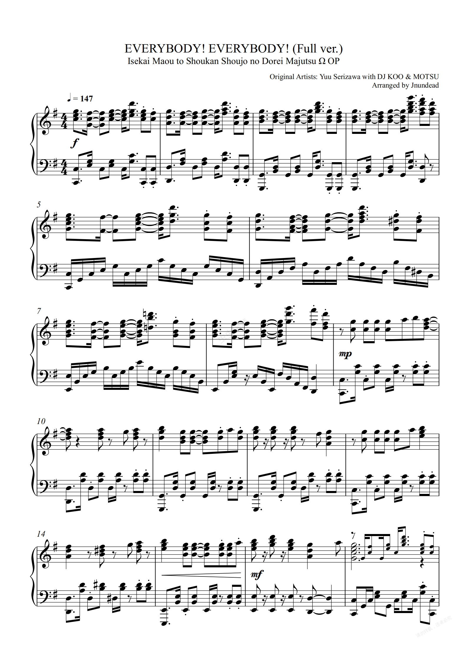 钢琴谱:《异世界魔王与召唤少女的奴隶魔术》主题曲-EVERYBODY! EVERYBODY【极限还原免费谱】