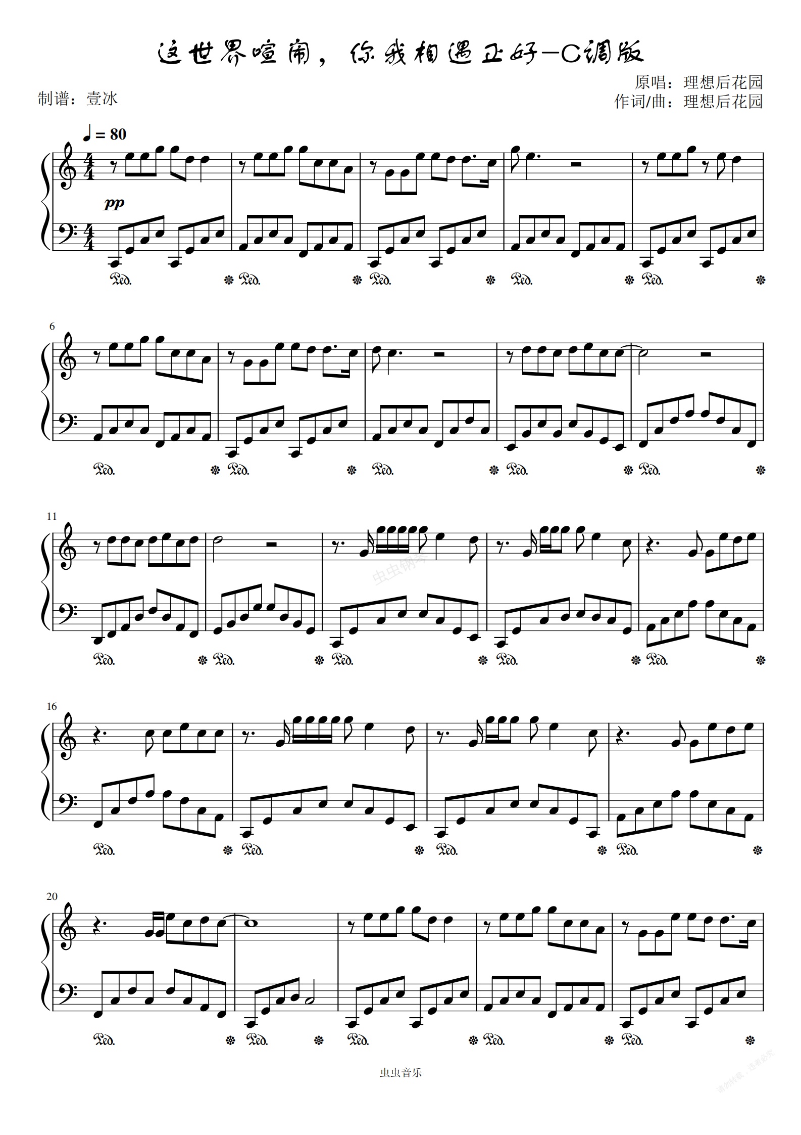 钢琴谱:这世界喧闹,你我相遇正好//理想后花园-C调版