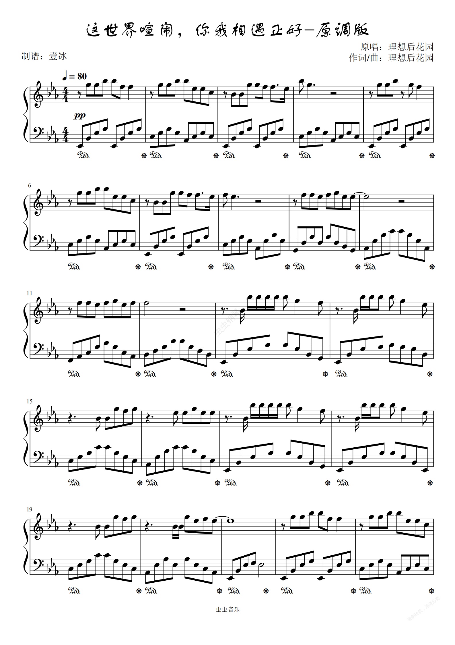 钢琴谱:这世界喧闹,你我相遇正好//理想后花园-原调版
