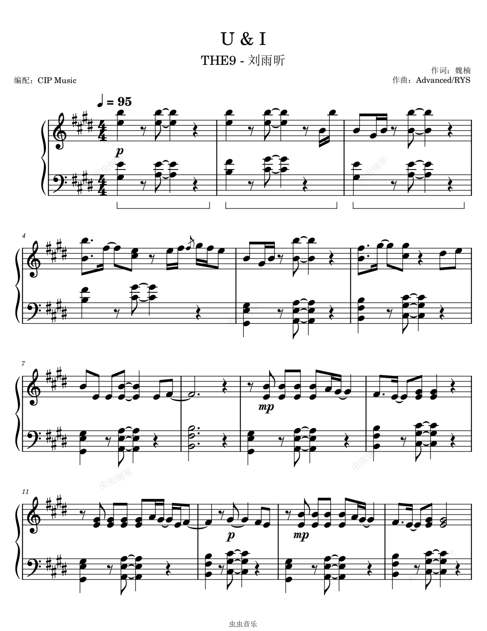 钢琴谱:《U&I》THE9-刘雨昕 原调版