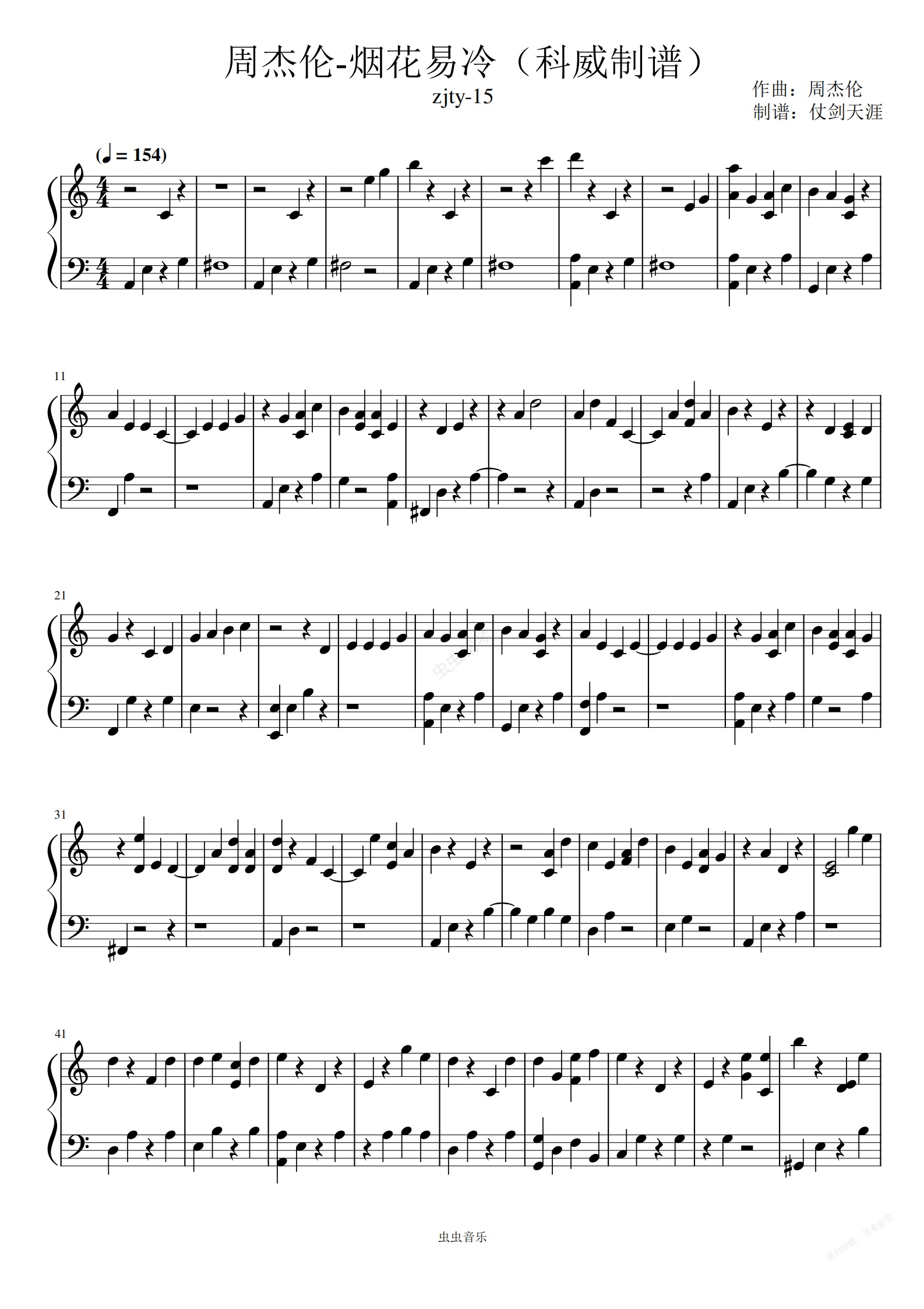 钢琴谱:周杰伦-烟花易冷(完美演奏版zjty-15)