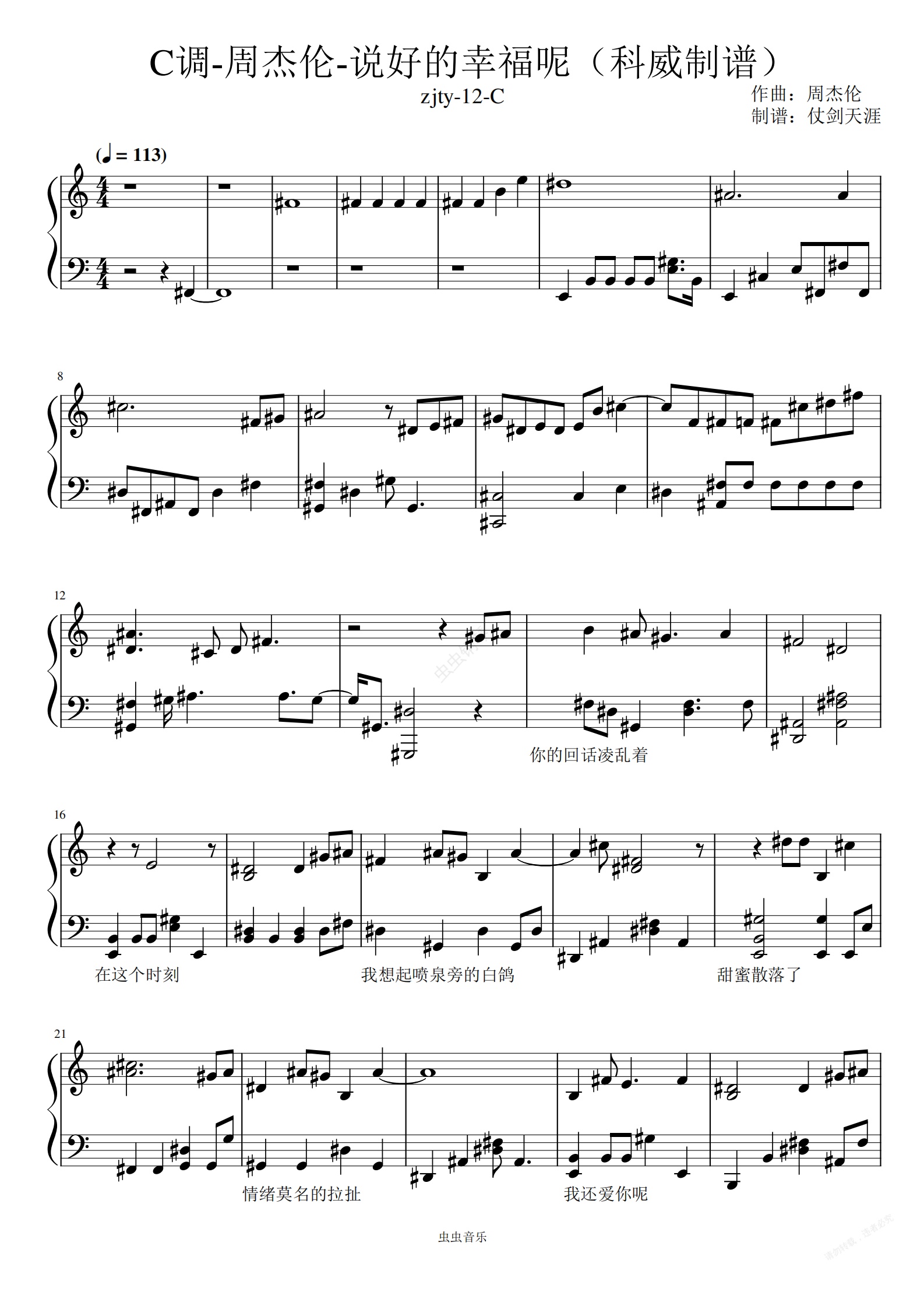 钢琴谱:C调-周杰伦-说好的幸福呢(简易弹唱版-科威制谱)