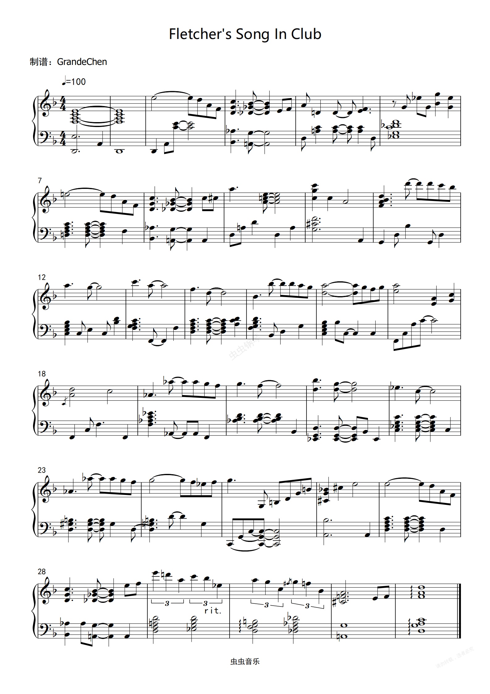 钢琴谱:电影爆裂鼓手插曲Fletcher's Song In Club钢琴独奏版