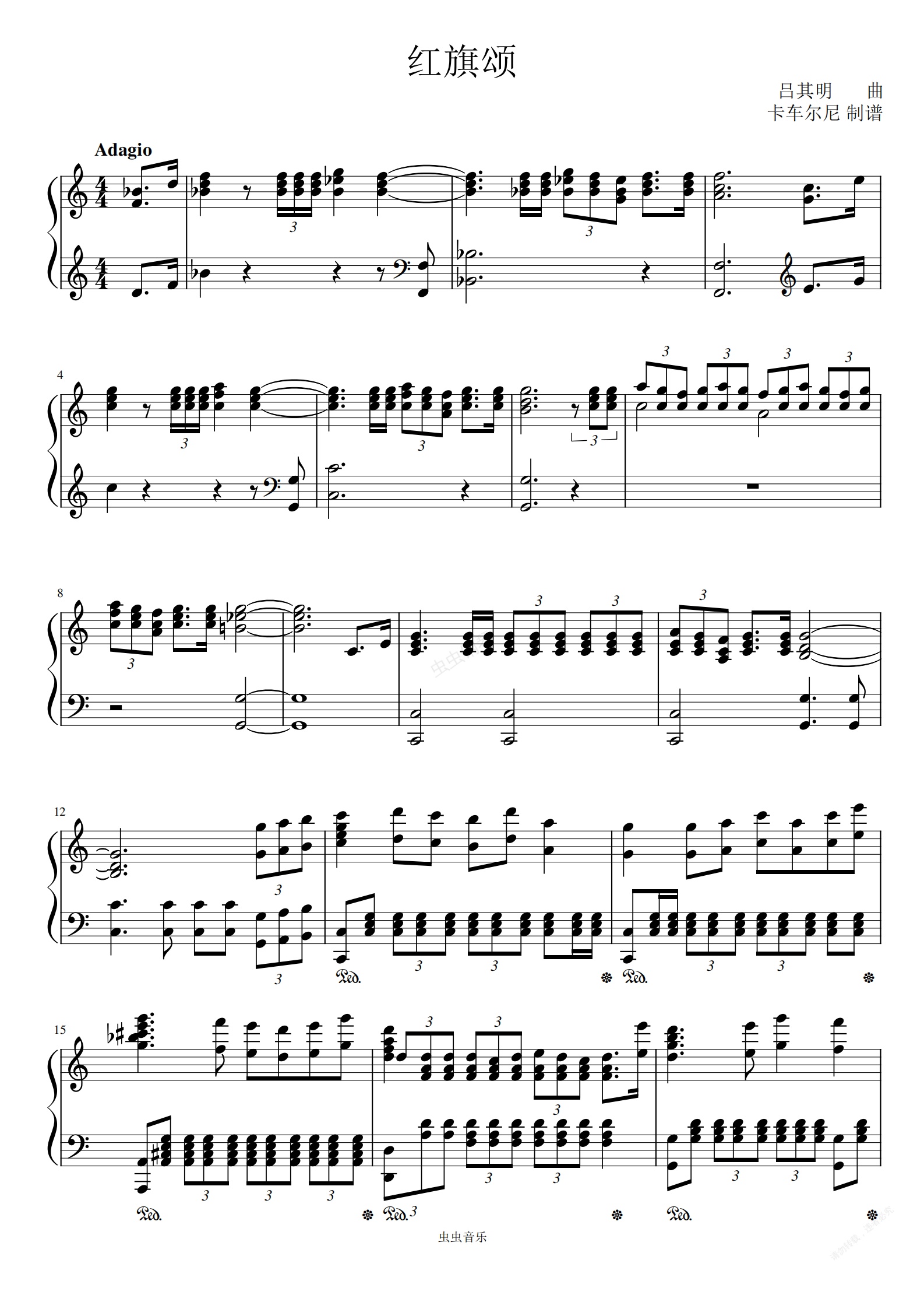 钢琴谱:《红旗颂》 易上手激昂段 为党百年庆生!
