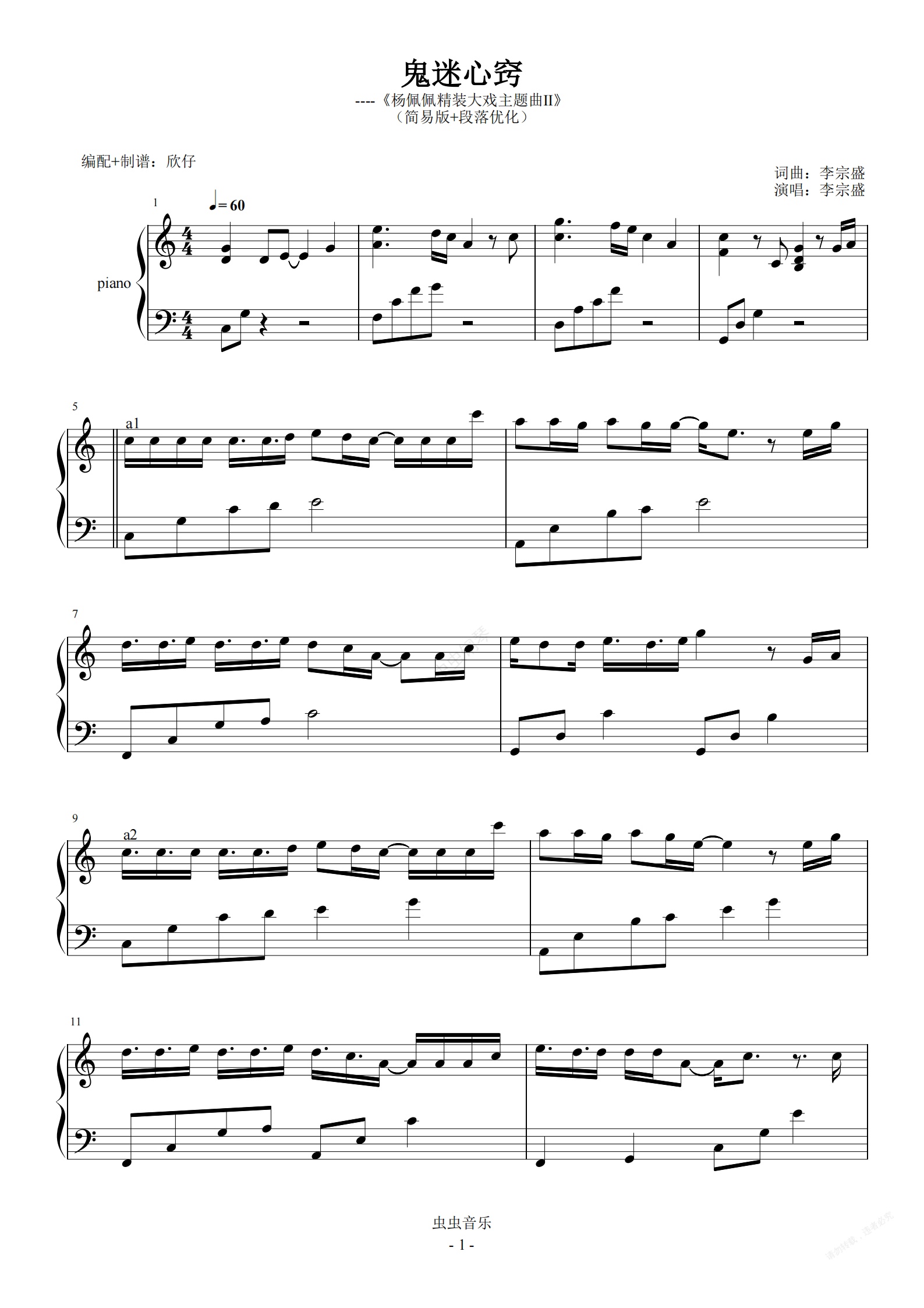 钢琴谱:李宗盛-C《鬼迷心窍》(简易版+段落优化)