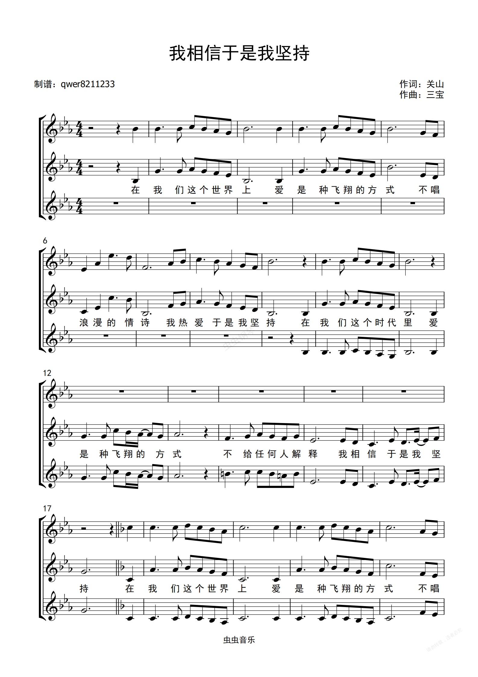 钢琴谱:我相信于是我坚持(后半部分合唱)
