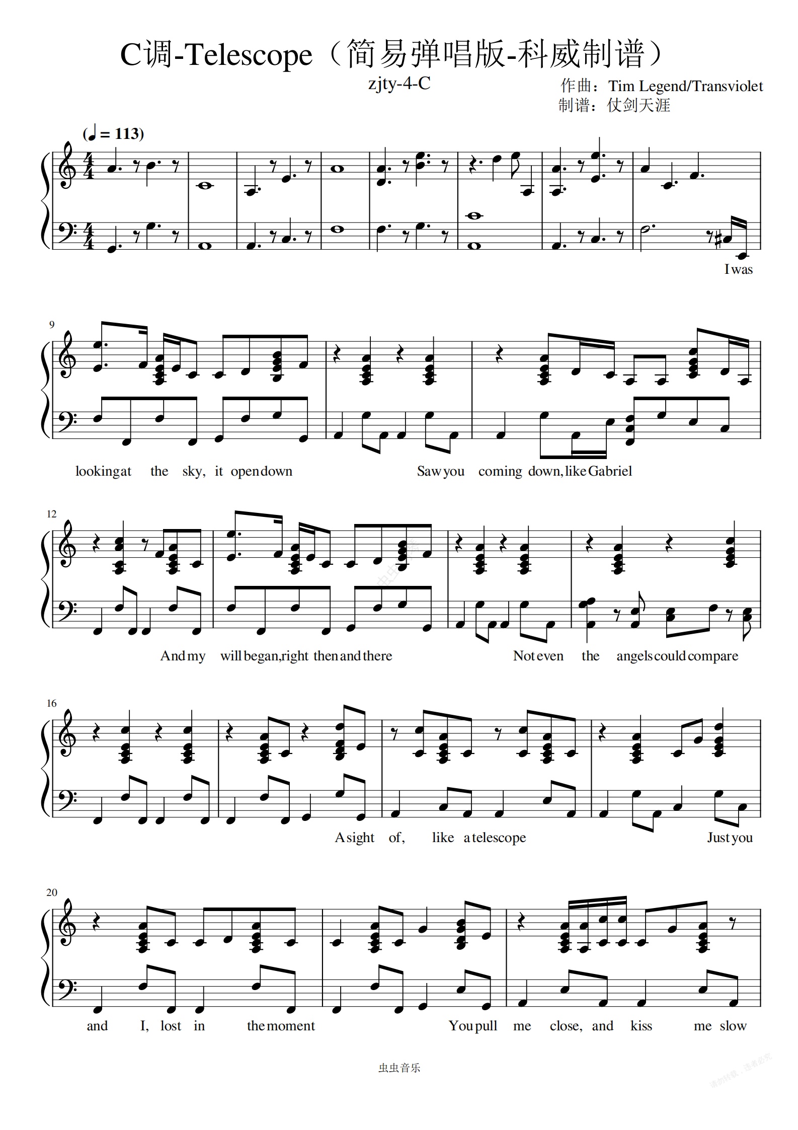 钢琴谱:C调-Telescope(简易弹唱版-科威制谱)
