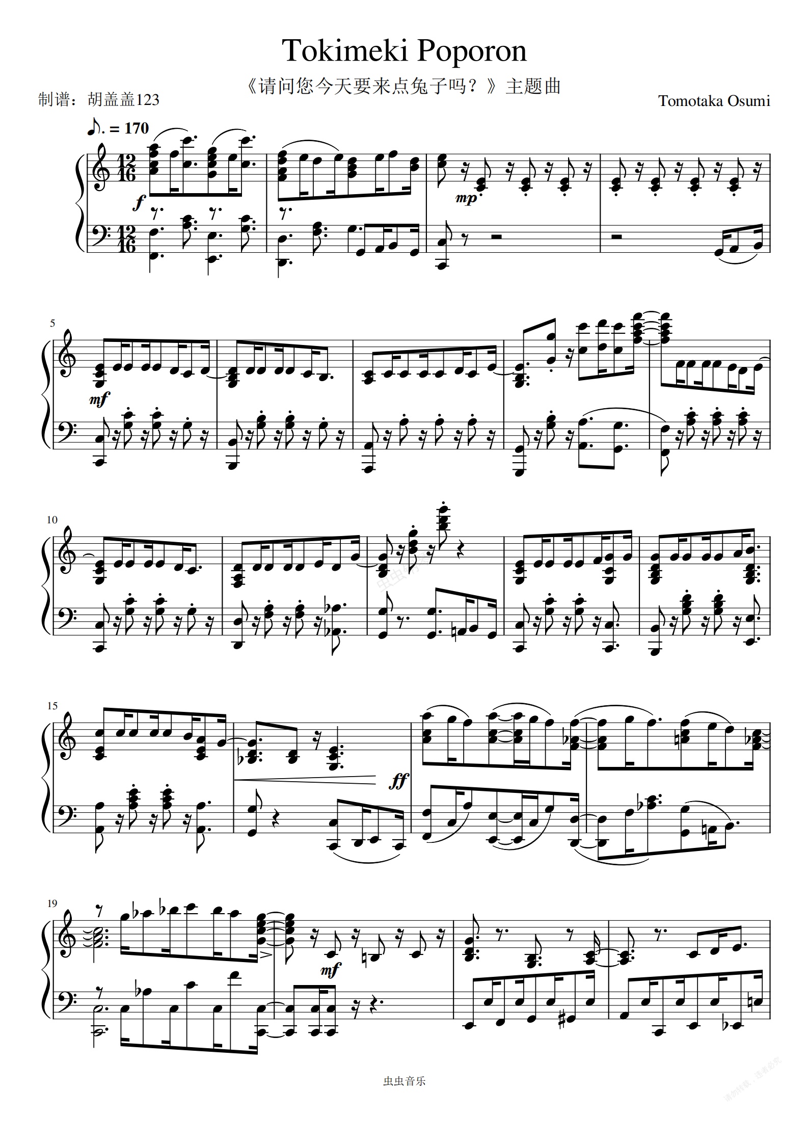 钢琴谱:Tokimeki Poporon(请问您今天要来点兔子吗)