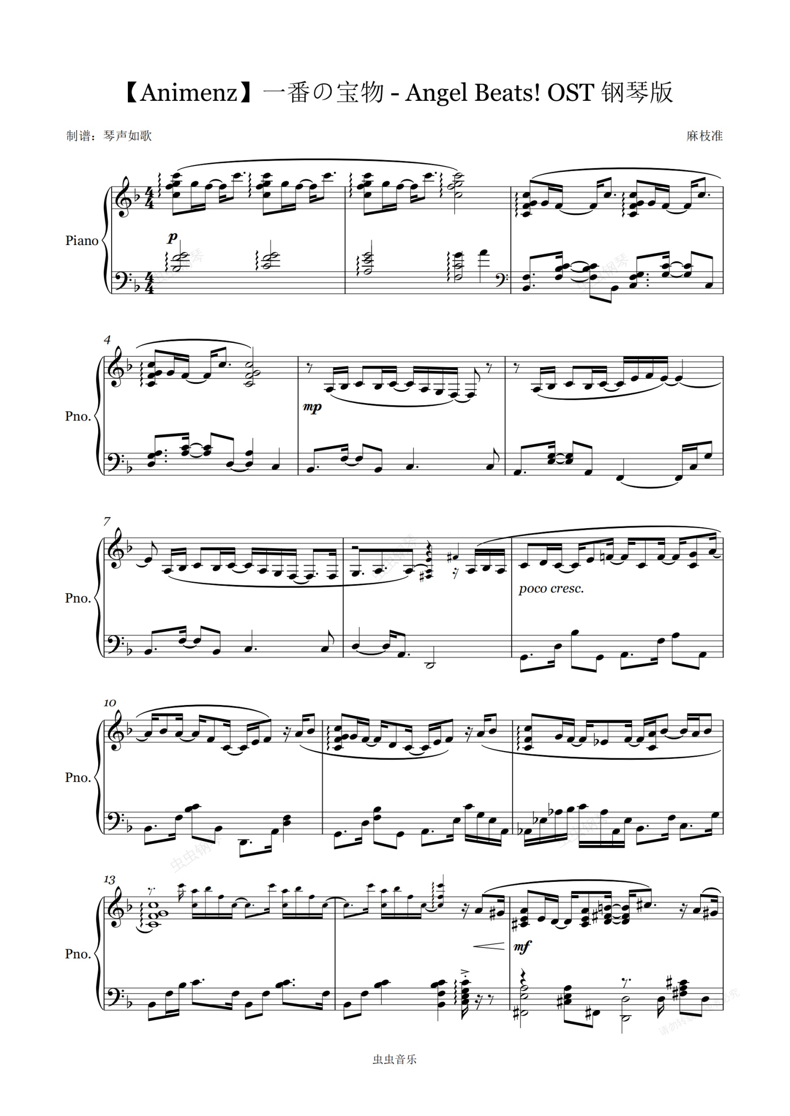 钢琴谱:【Animenz】一番の宝物 - Angel Beats! OST 钢琴版
